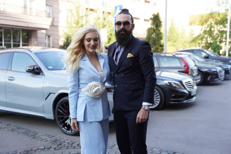 Oboje su, što je zanimljivo, bili u odelima. Nikolina je za ovu priliku odabrala pantalone i sako nežno plave boje, dok se njen suprug odlučio za nešto tamniju varijantu.