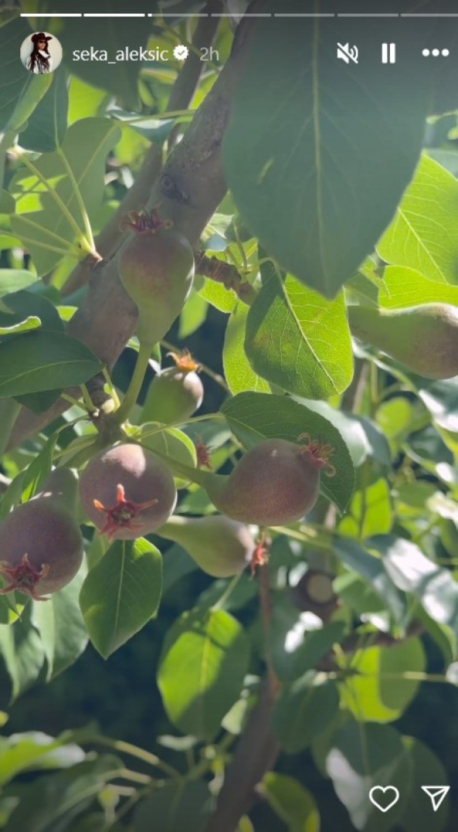 U dvorištu je veliko drvo smokve, koje će za nekoliko meseci imati prve plodove, što je Aleksićeva takođe zabeležila. Kao što je poznato, Seka ima i kokošinjac, pa njeni jedu domaće jaja.