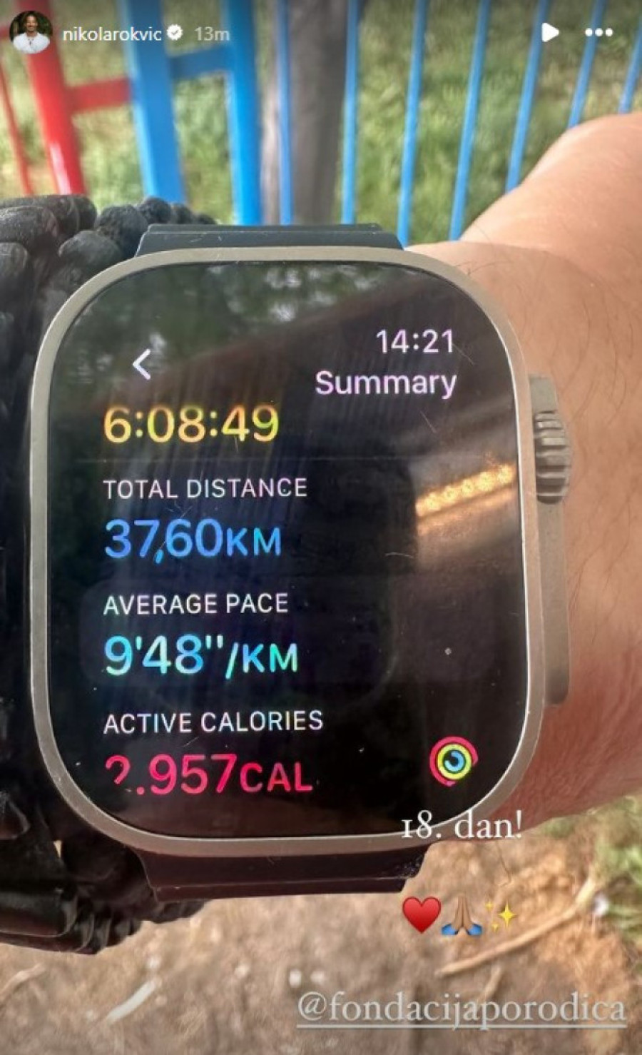 - Fino je upeklo... Evo me na 31. kilometru danas, idem još jedno pet, šest, sedam kilometara, ali dobro. Ušao sam u Grčku, lepo je, živeli - prokomentarisao je on u okviru svojih „storija".