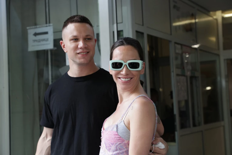 Nikolija je iz bolnice izašla sa naočarima za sunce, u dugoj haljini, vezane kose i sa širokim osmehom, a pevač je nosio bebu i čvrsto držao suprugu za ruku.