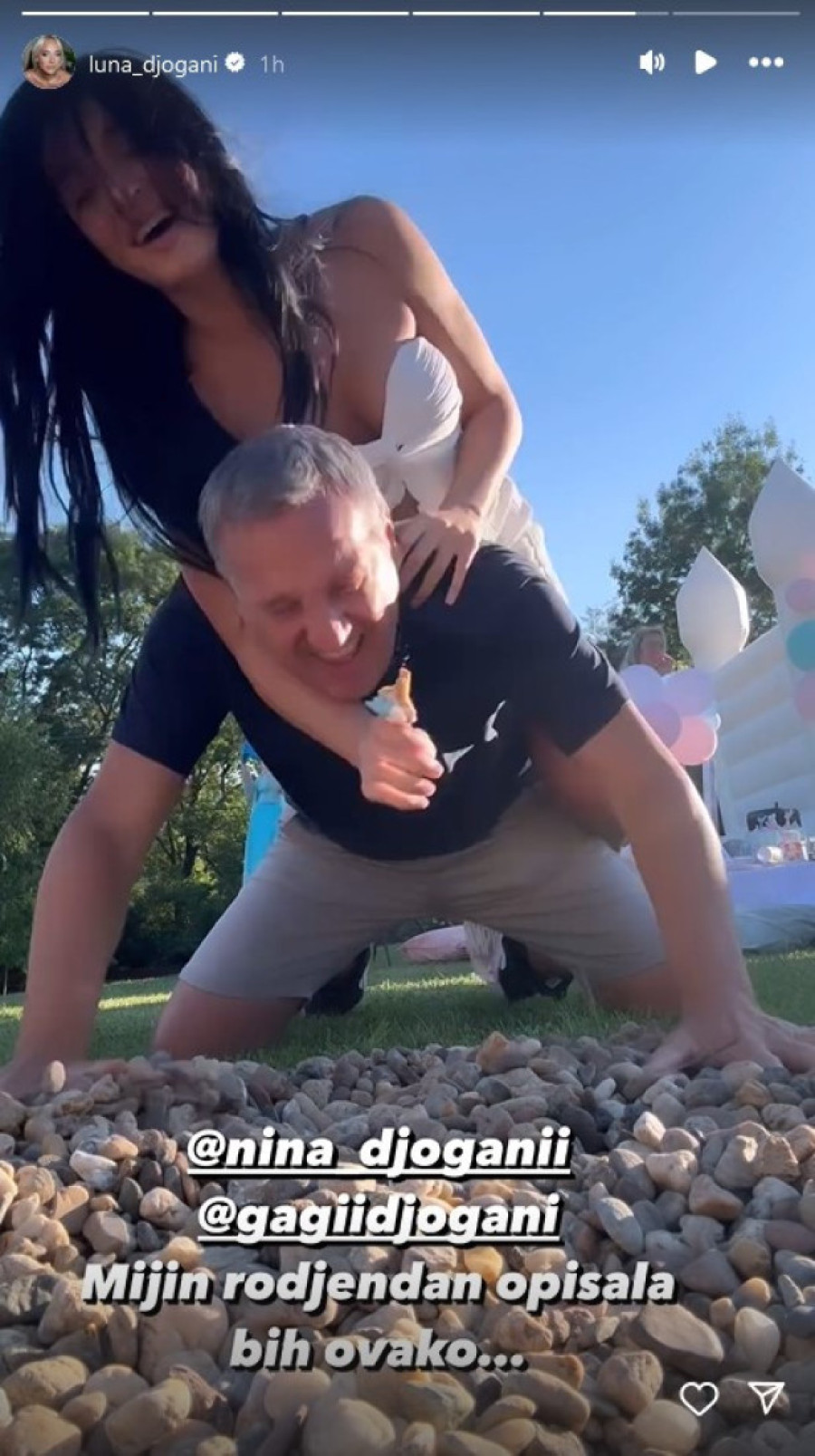 Influenserka se tokom celog dana zabavljala sa gostima, posebno ocem i sestrom, koji su u jednom trenutku i igrali uz pesmu "Euphoria", te se i valjali po travi.