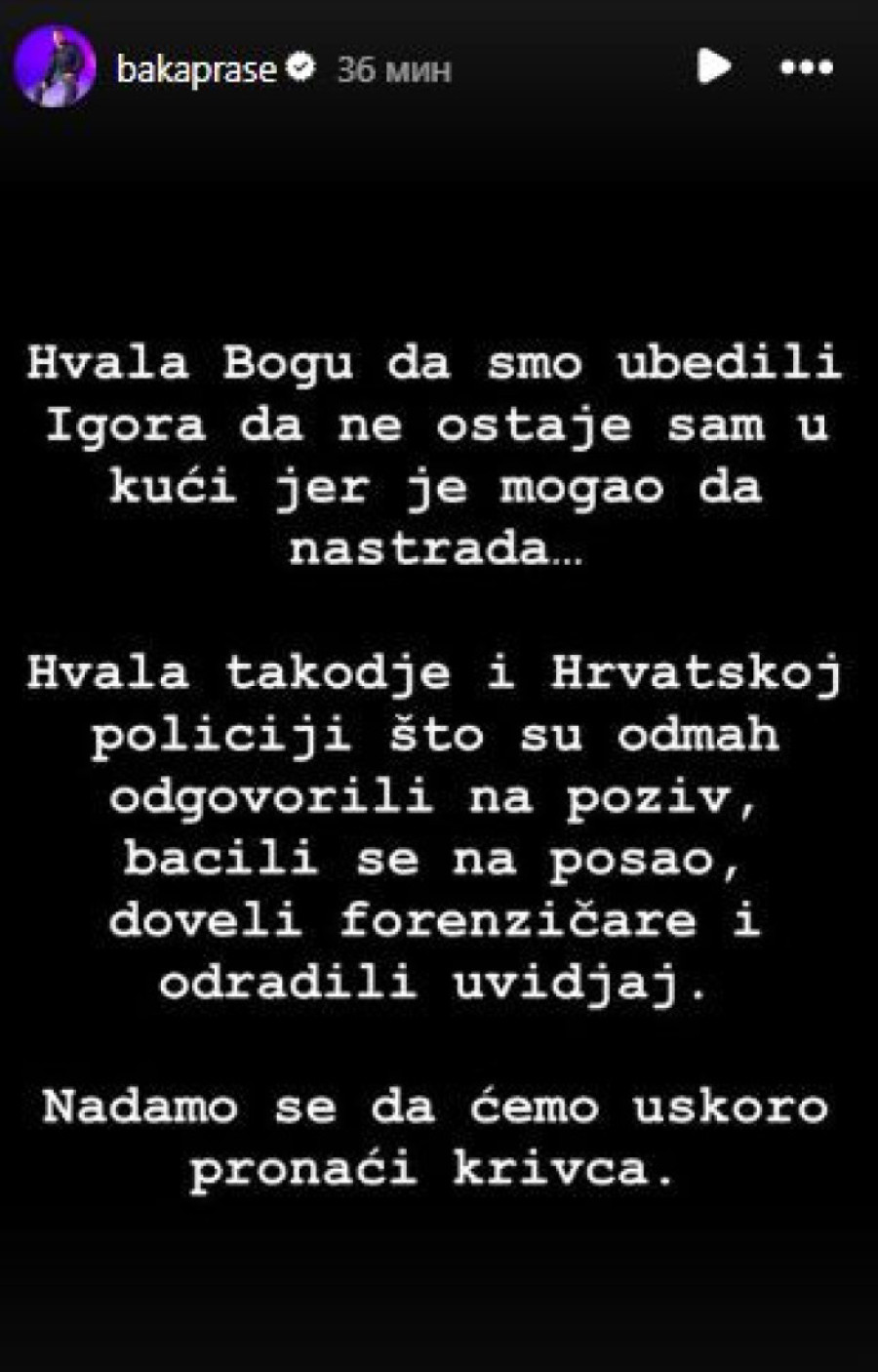 - Sve stvari, čak i odeća i parfemi ljudi koji su bili sa mnom, moji „rolakesi", keš, odeća u vrednosti od oko 250.000 evra. Hvala Bogu da smo ubedili Igora da ne ostaje sam u kući, jer je mogao da nastrada. Hvala takođe i hrvatskoj policiji, što su odmah odgovorili na poziv, bacili se na posao i doveli forenzičare i odradili uviđaj. Nadam se da ćemo uskoro pronaći krivca - istakao je onda Bogdan, koji nudi nagradu od 25.000 evra onome ko pomogne u raskrinkavanju lopova, što vas sve čeka u galeriji koja sledi.