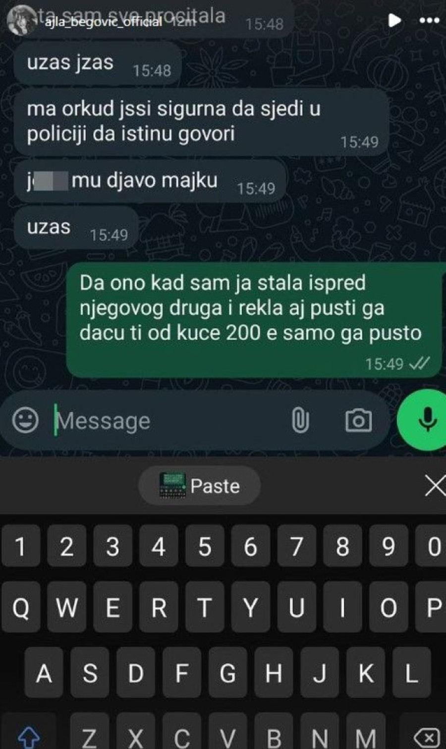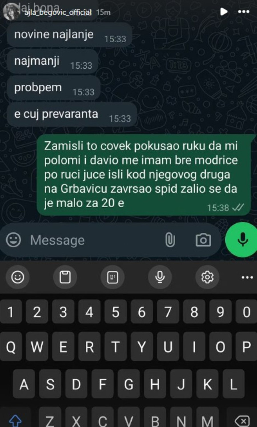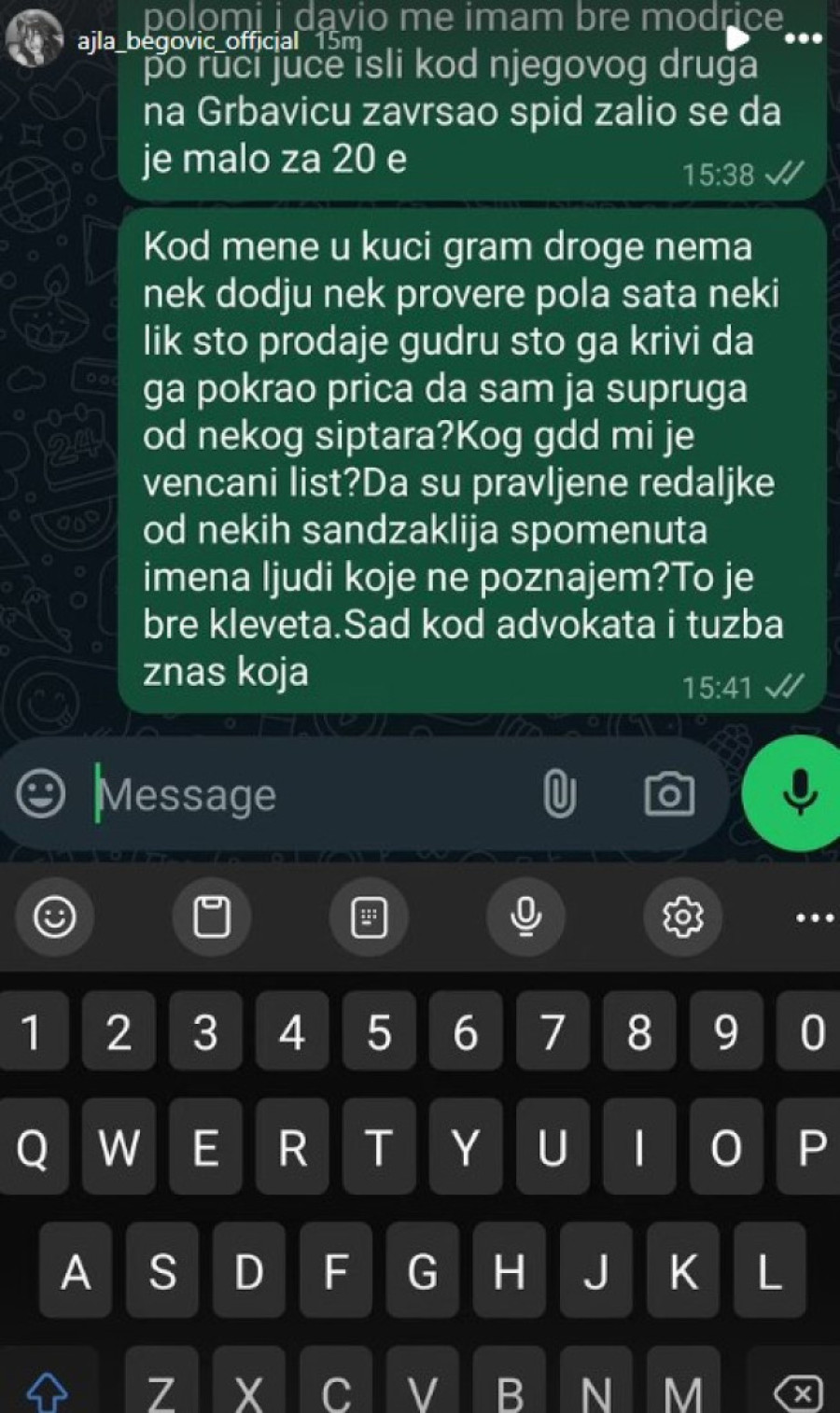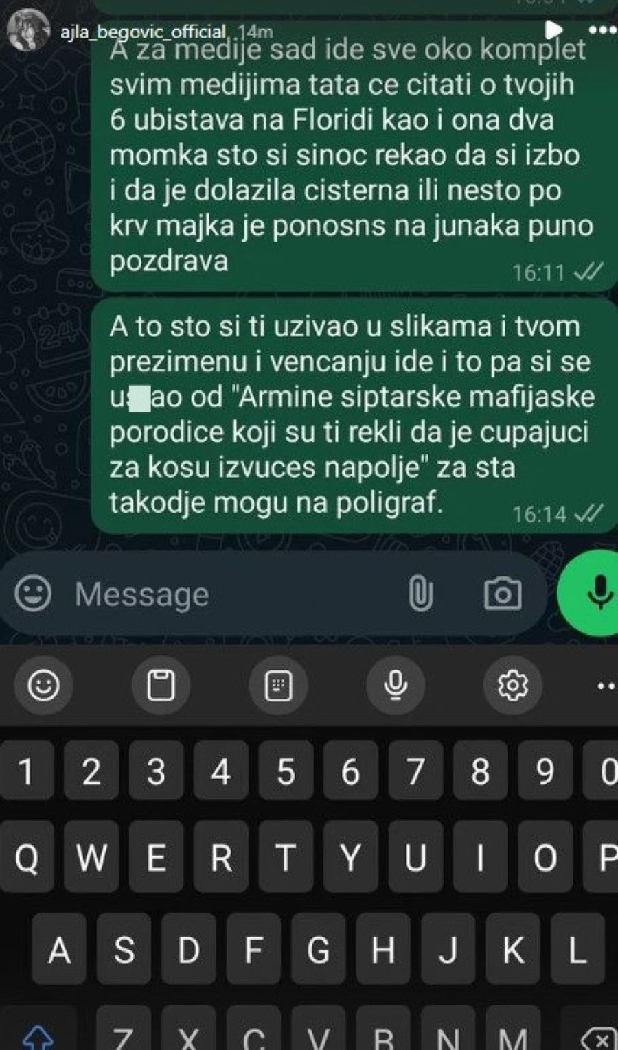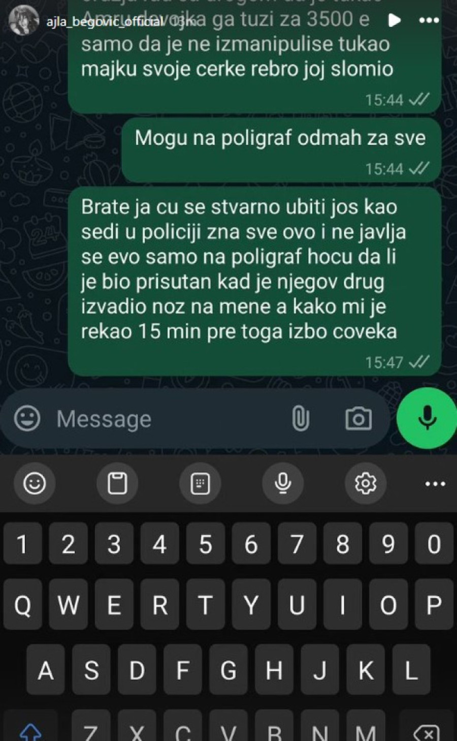Potom, u nekoliko „printskrinova" pokazala je i poruke u kojima naglašava da zbog svega što je iznela „može na poligraf", šokirana situacijom u kojoj se našla.