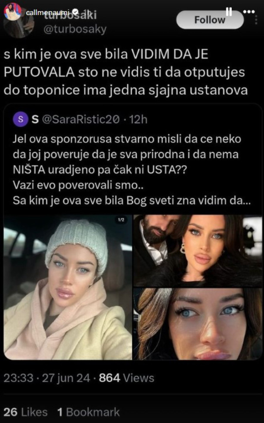Nema sumnje da će ova njena objava privući pažnju, ali je Mina pokazala koliko je to zanima, pa joj to sigurno neće poremetiti putovanje.