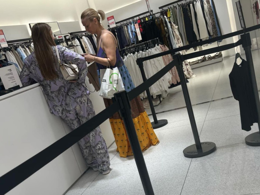 Njih dve smo zatekli na kasi, a tom prilikom videli smo Tržanovu koja je bila bez trunke šminke na licu, dok joj je kosa bila skupljena u neobavezni rep. Obukla je dugu široku haljinu s dubokim dekolteom, a sudeći po opuštenom stajlingu nije mnogo marila za to da li će je neko primetiti.