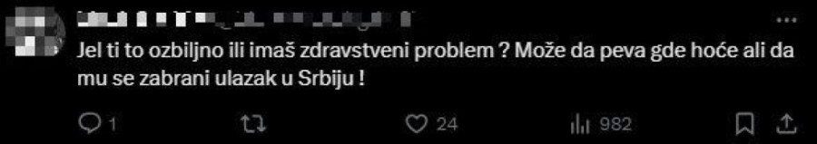 "Može da peva gde hoće, ali da mu se zabrani ulazak u Srbiju", "Kako sme uopšte posle da dođe u Srbiju?", "Ruši svoj, a i ugled ostalih muzičara" - bili su samo neki od komentara.