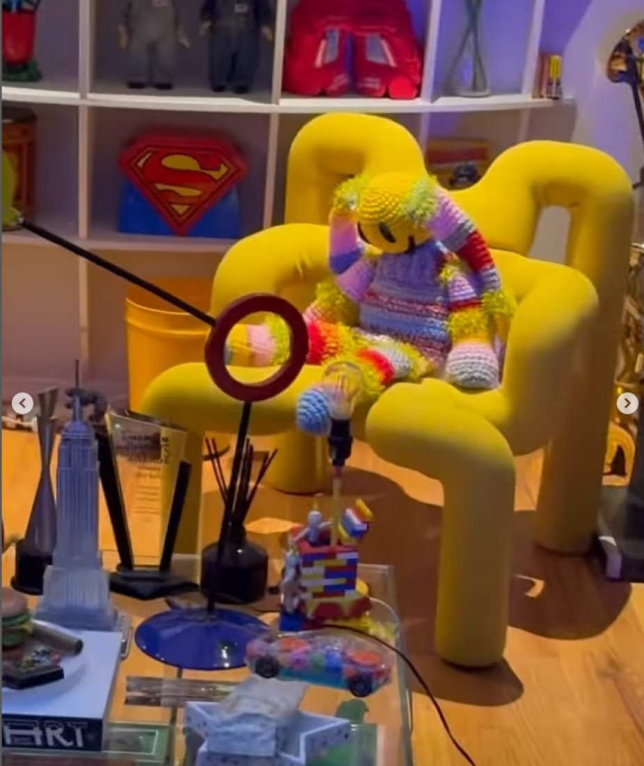 Ipak, dok spolja izgleda veličanstveno, iza ulaznih vrata je porodični raj, ukrašen stotinama igračaka i slatkim porodičnim portretima. Igraonica je bila ispunjena svim vrstama igračaka, uz televizor, kantu za smeće u obliku korneta za sladoled i dodatnim šarenim detaljima.