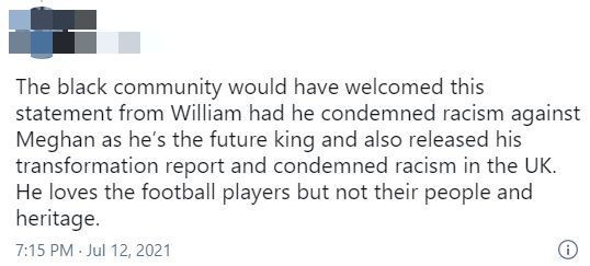 Princ Vilijam hrabro je „ustao” za pojedine fudbalere Engleske posle rasističkih komentara koji kruže na njihov račun, međutim, ubrzo se zatim i sam našao na meti brojnih kritika. Naime, mnogi su na društvenoj mreži Tviter došli do zaključka da je isto tako mogao da odreaguje i kad se Megan Markl mučila ali – nije.