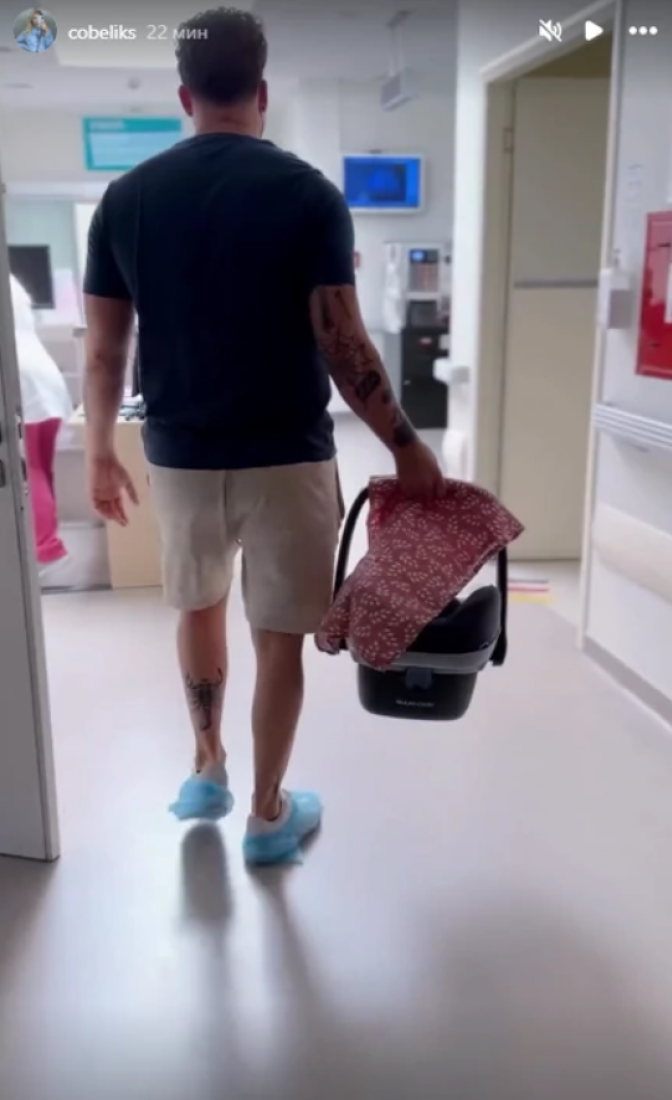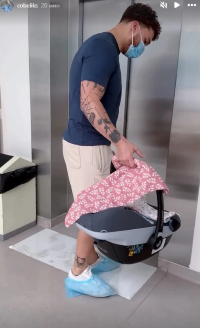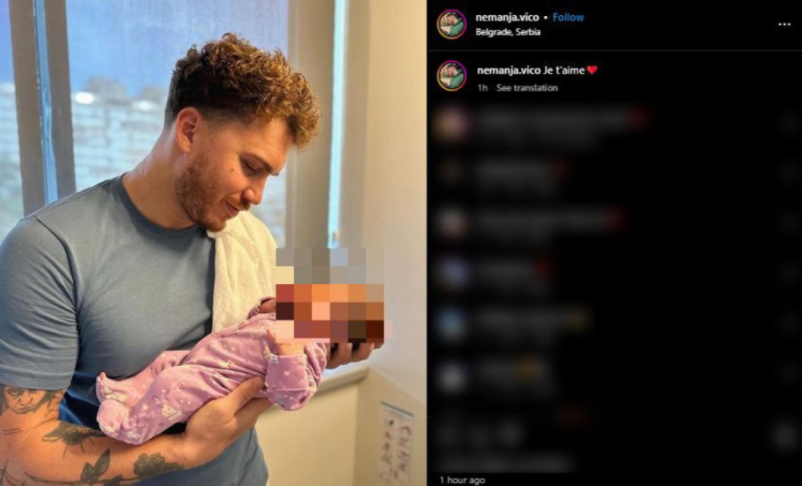 Danas je Jelena izašla iz porodilišta, a po nju je došao suprug Nemanja, koji je ponosno nosio nosiljku sa njihovom bebom.