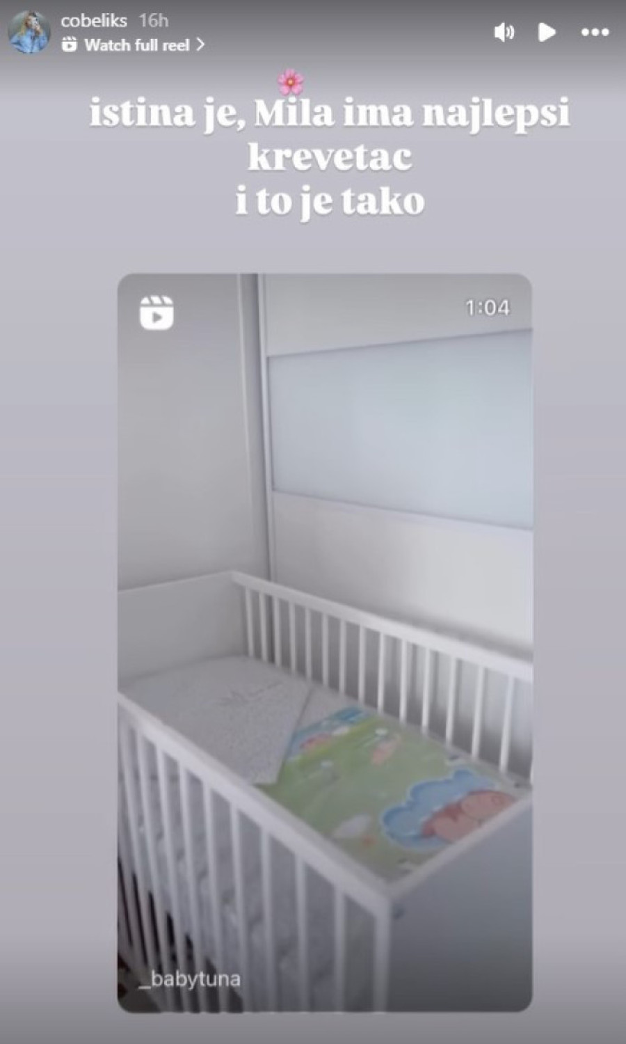 - Istina je, Mila ima najlepši krevetac i to je tako - poručila je ona uz kratki snimak istog, pa zasigurno izmamila i brojne reakcije svojih fanova.