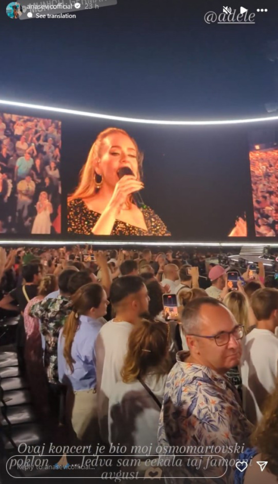 Može se zaključiti da je doživela pravu avanturu povodom Adelinog koncerta, za koji je, inače, posebno izgrađena arena.