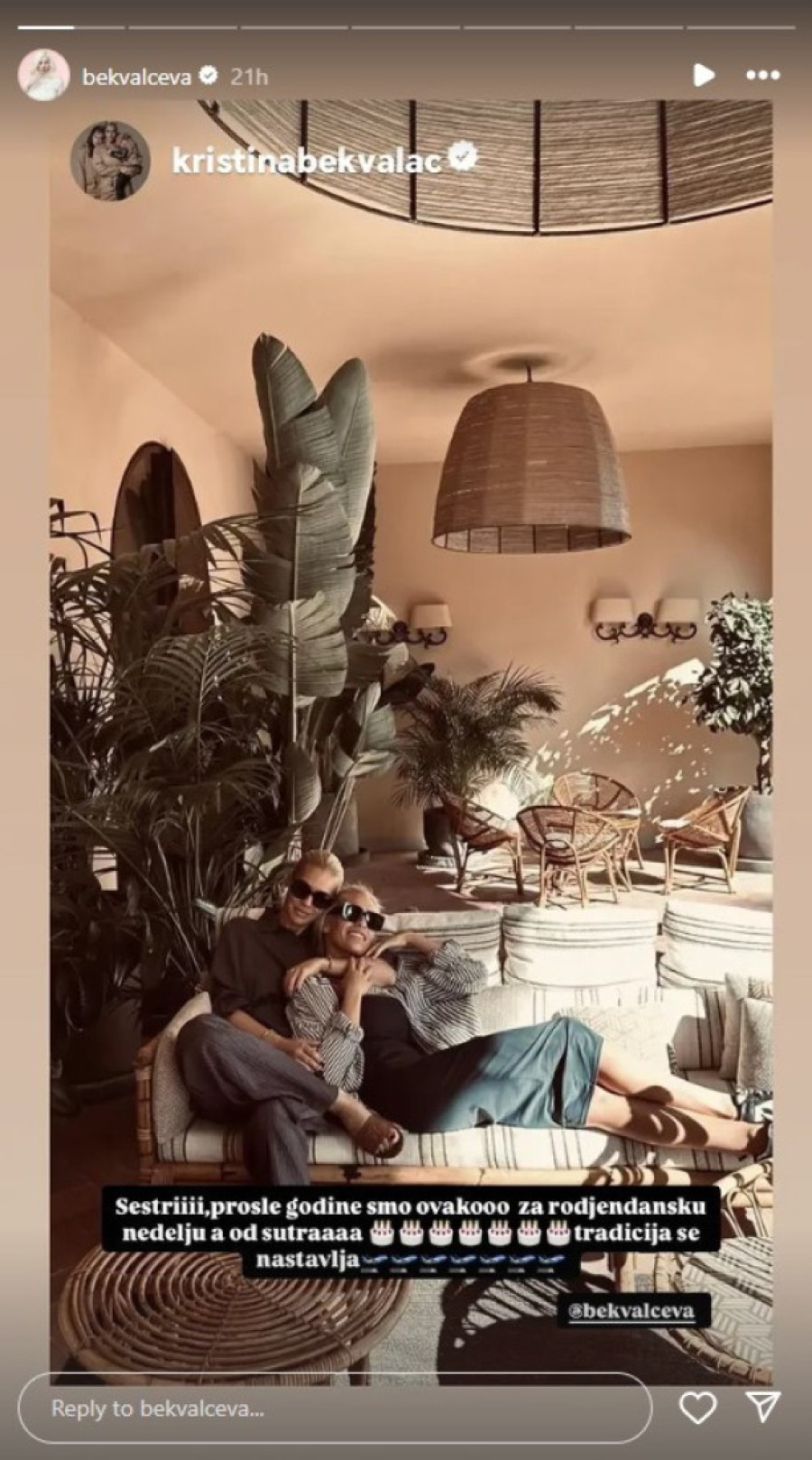 Njena sestra Kristina Bekvalac podelila je na društvenim mrežama video iznenađenja koje je Natašu dočekalo u hotelskoj sobi - šampanjac, torta, buket svežeg cveća i baloni, sve je bilo spremno za slavlje.