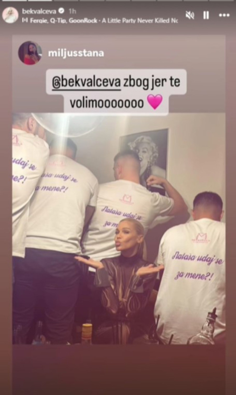 Najzanimljiviji deo te večeri bili su konobari koji su na leđima imali specijalnu poruku za Natašu, odnosno pitanje: "Nataša udaj se za mene?".
