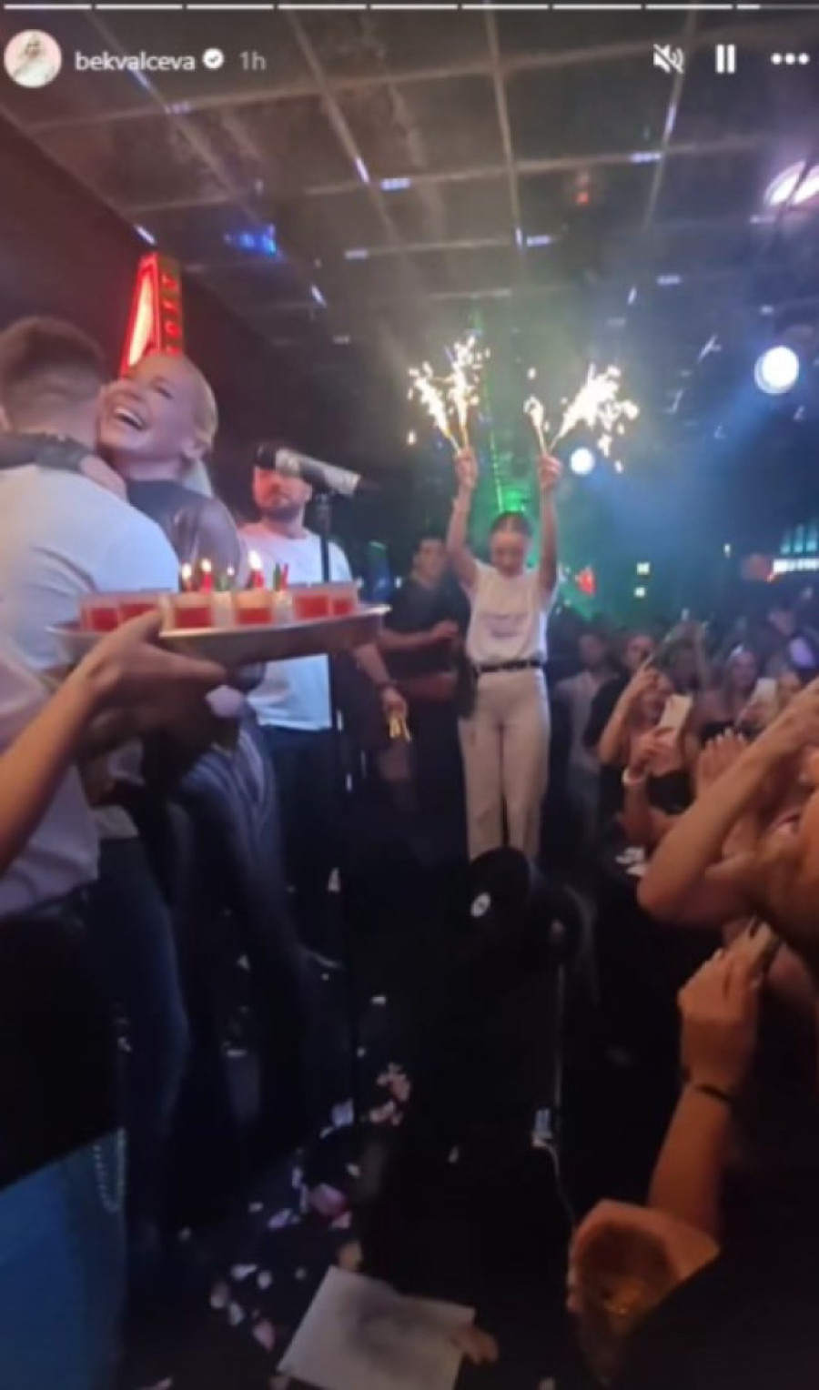 Dok je pevala osoblje kluba pojavilo se u specijalnim majicama na kojima su pisali stihovi njenog hita "U meni 300 stepeni" i čuvene izjave "Lako je biti pošten kad te niko neće", a pevačici su na binu su doneli tortu i šampanja.