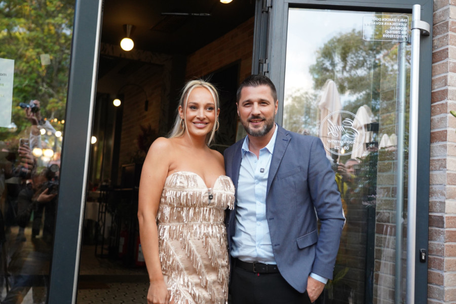 Luna je prvo nosila bež komplet, odelo i sako, a nakon što su ušli u salu, ona se presvukla, te se pred medijima, među kojima je bila i ekipa 24sedam, predstavila u potpuno drugačijem izdanju.
