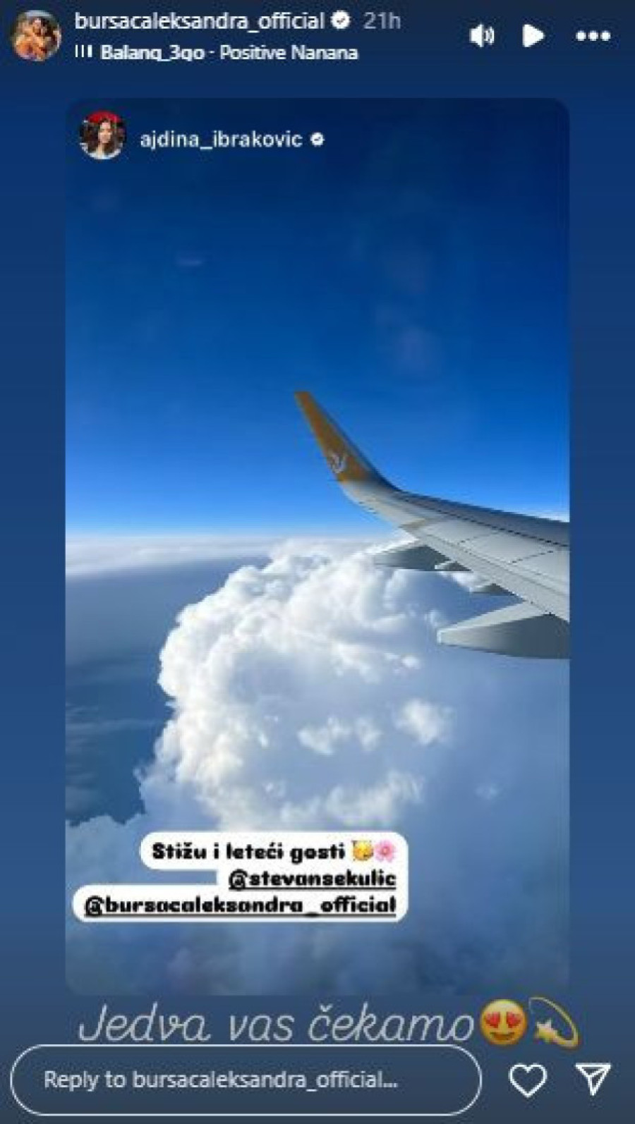 - Moja sestra ima toliku tremu... Veću nego ja. Mukica (osmeh)... Poželite mi sreću - pozdravila je sve ona putem Instagrama, gde je pokazala i da pojedini gosti stižu avionom iz Crne Gore.