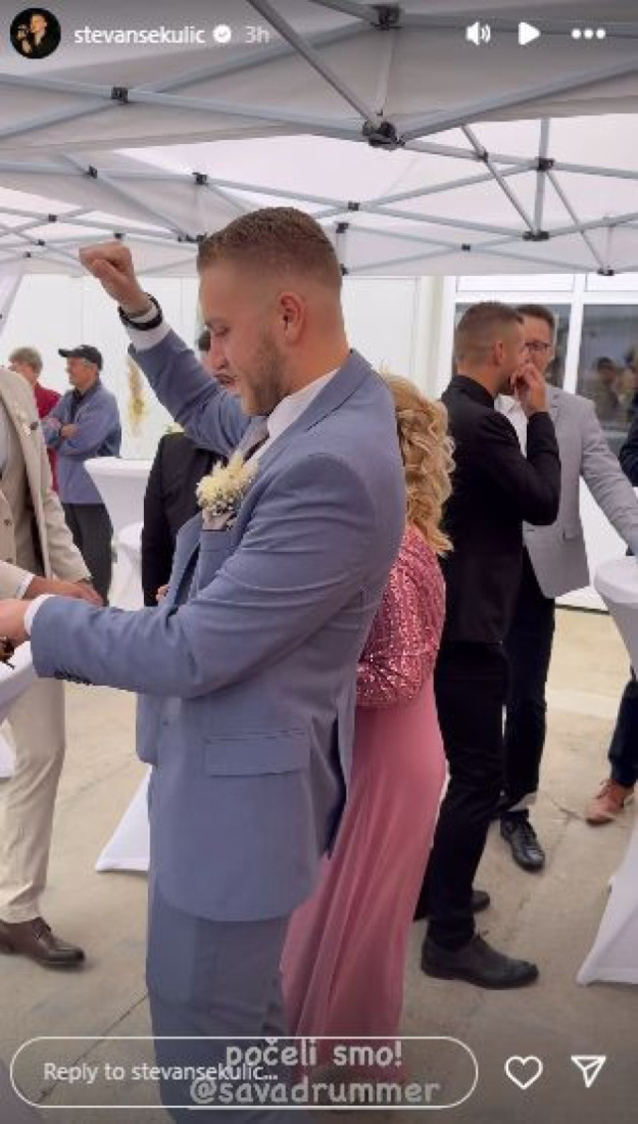 Budući mladoženja i nekoliko sati pre svadbe, sa druge strane - započeo je veselje s kumom i ostalim najmilijima.
