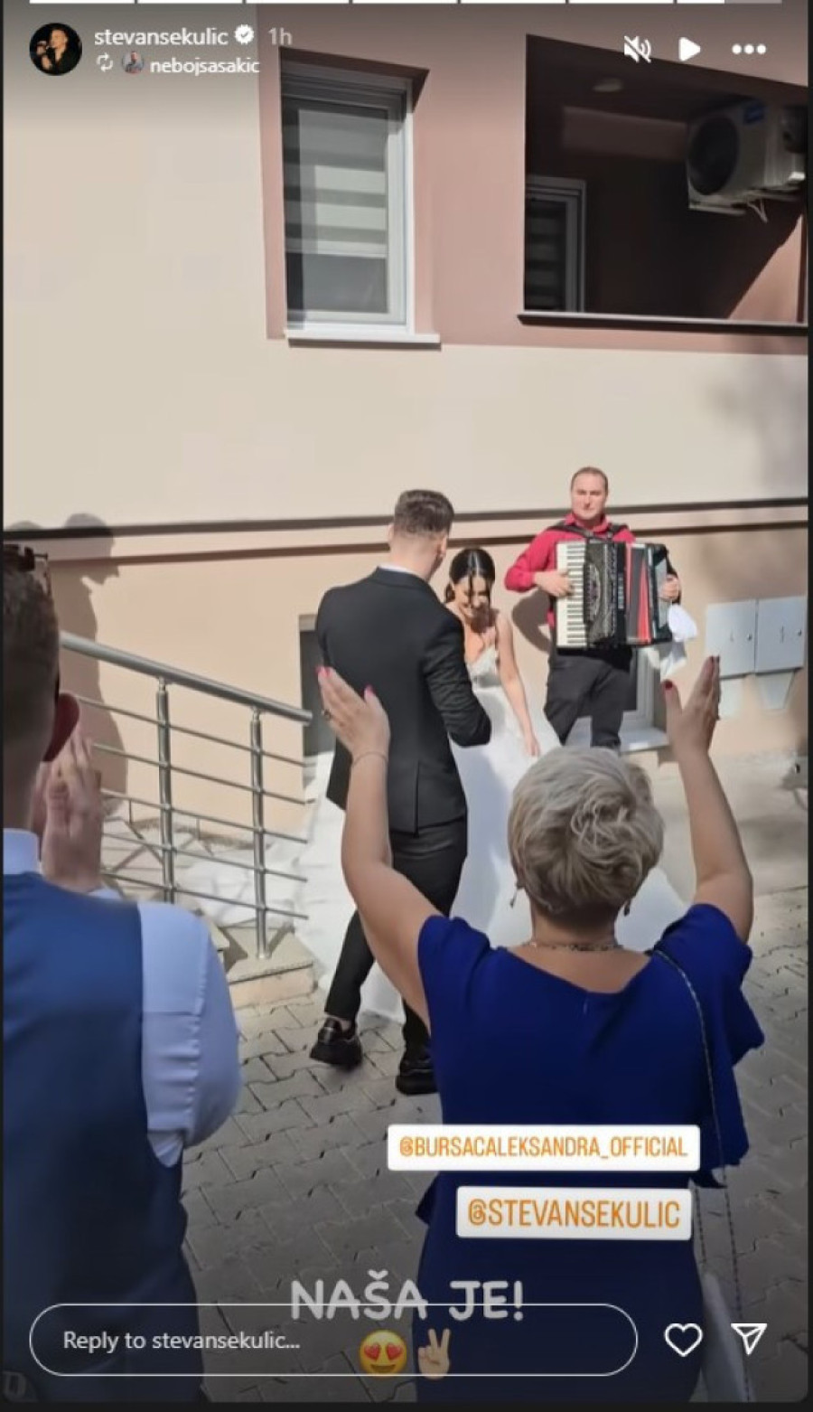 Muzika se orila ispred zgrade u kojoj Aleksandra živi, a ona nije prestajala da cupka dok je silazila niz stepenice. Stevan joj je odmah prišao, te su jedno drugo čvrsto zagrlili, a pao je i po koji poljubac.