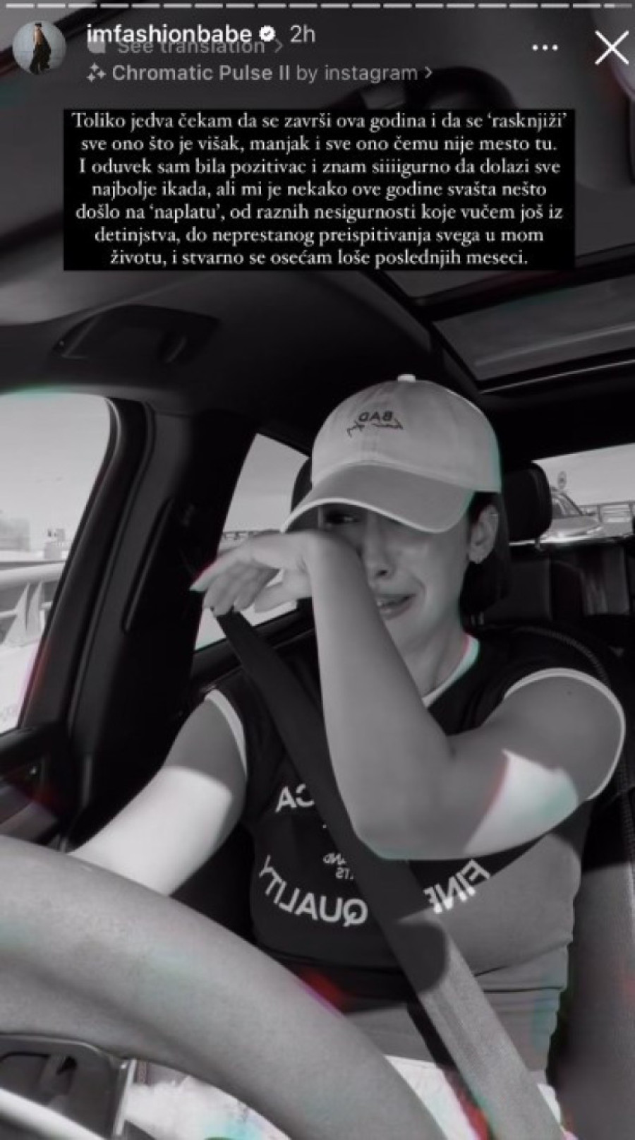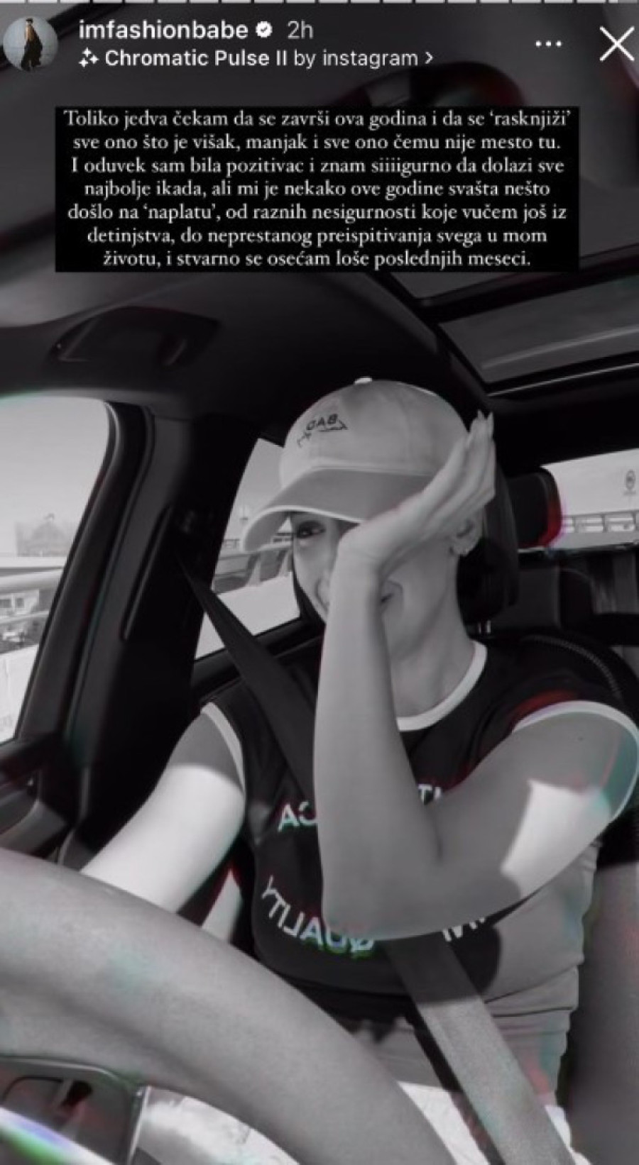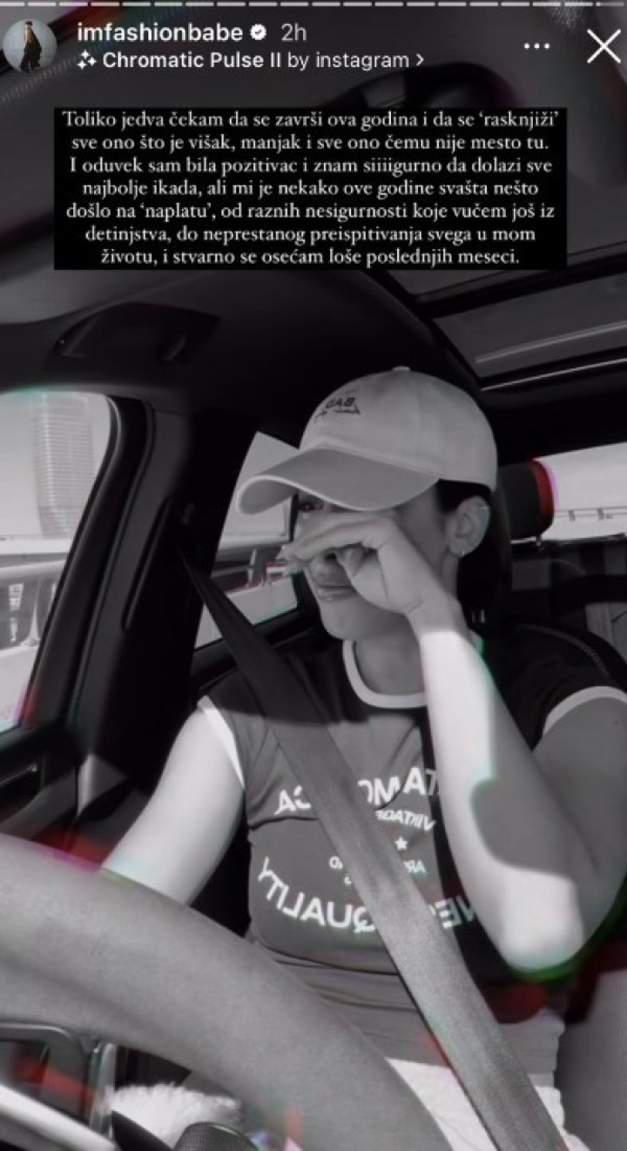 - Toliko jedva čekam da se završi ova godina i da se ''rasknjiži'' sve ono što je višak, manjak i sve ono čemu mesto nije tu. I oduvek sam bila pozitivac i znam da sigurno dolazi sve najbolje ikada, ali mi je nekako ove godine svašta nešto došlo na ''naplatu'', od raznih nesigurnosti koje vučem još iz detinjstva, do neprestanog preispitivanja svega u mom životu i stvarno se osećam loše poslednjih meseci - napisala je influenserka, a svi su se zapitali šta se desilo.