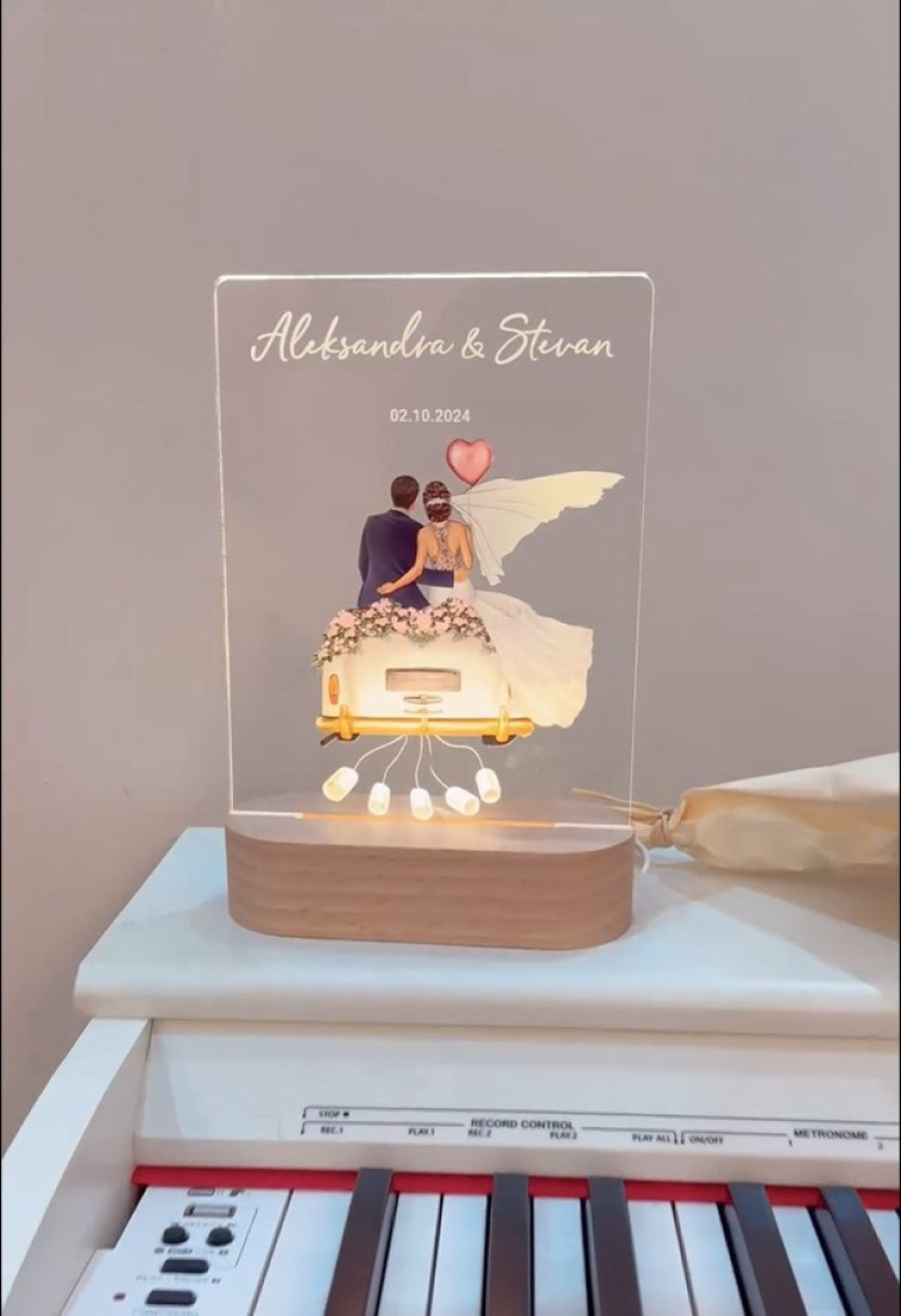 Ipak, poseban detalj u stanu je ukrasna lampa na kojoj su karikature mladenaca, a iznad njih pišu imena pevača i pevačice i datum njihovog venčanja.