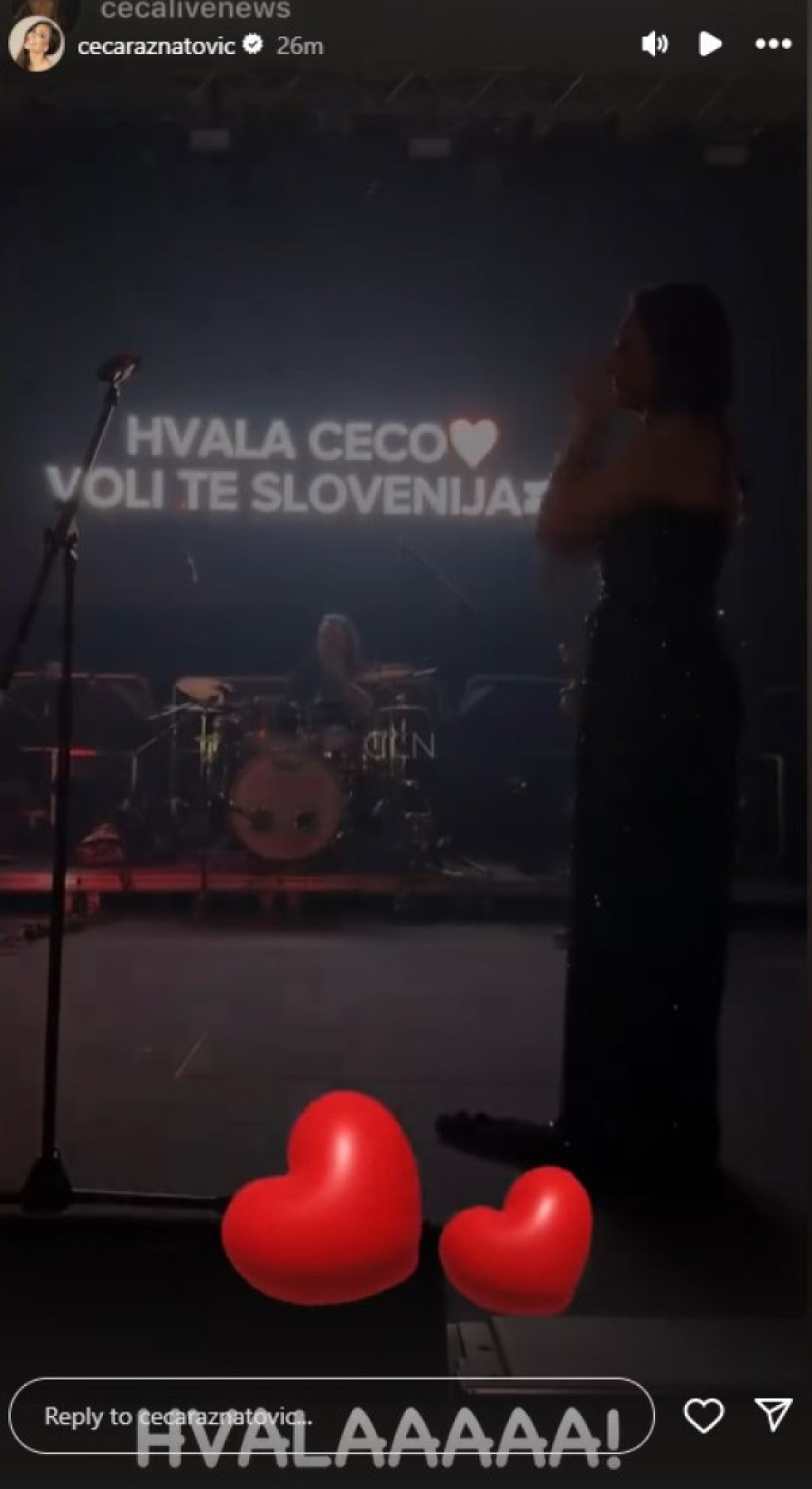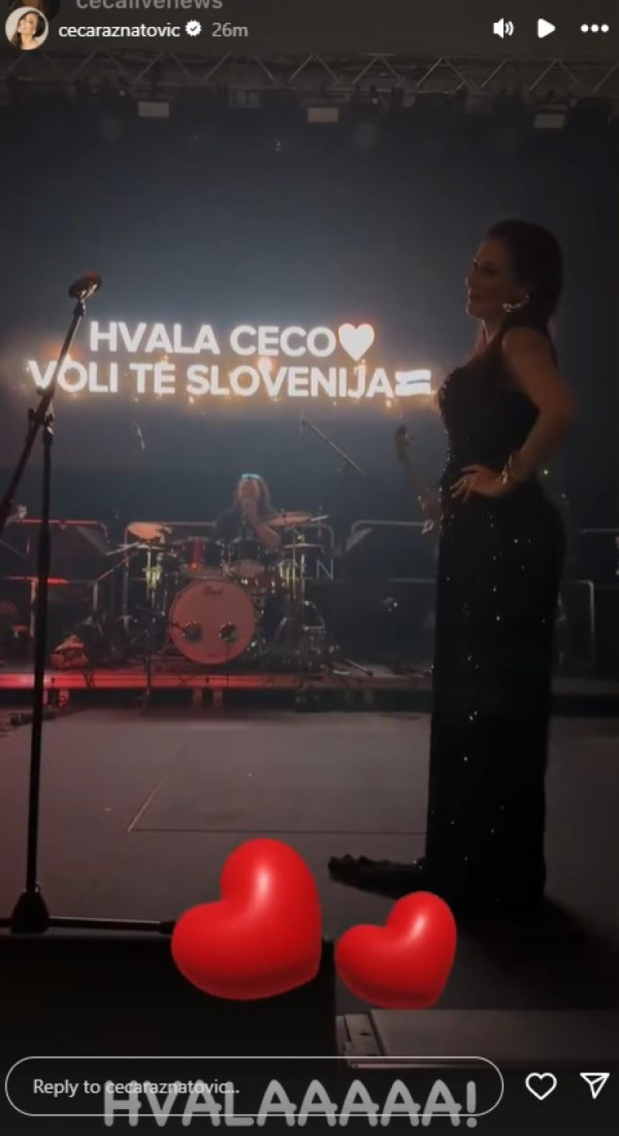 Pevačica Svetlana Ražnatović održala je sinoć koncert u Sloveniji u mestu Podčetrtek koje, inače, broji nešto više od 500 stanovnika. Ugostilo je, međutim, 3.000 posetilaca samo pošto se pročulo da će se ona tu latiti mikrofona, a zbog iznenađenja koje su joj priredili - Ceca nije uspela da se suzdrži.