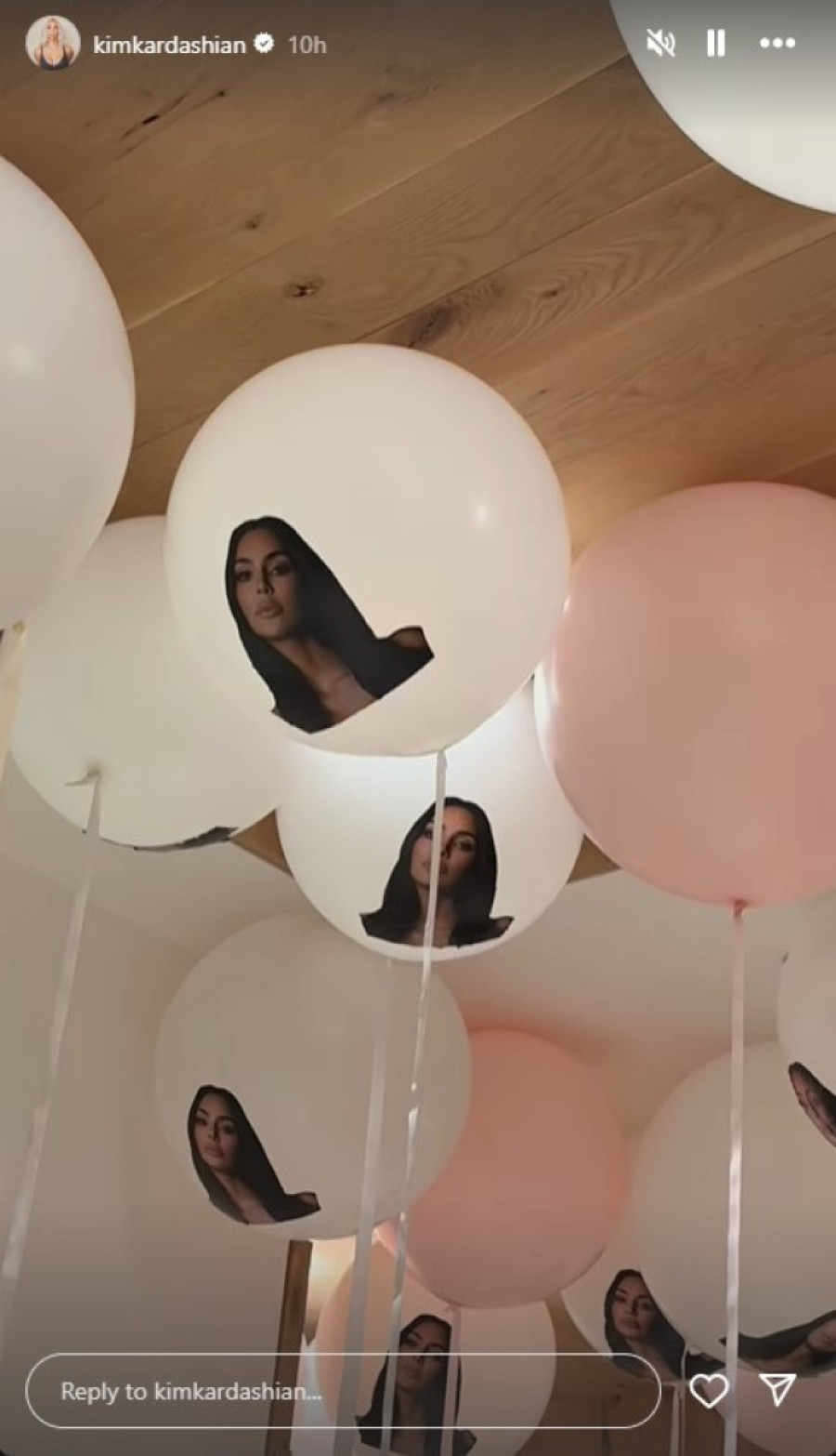 Dnevna soba bila je puna belim i pink balonima, a na njima je bila fotografija Kardašijanove, dok su na uzicama bili okačeni njihovi porodični polaroidi. Nije, naravno, izostala ni torta. Bela, okrugla rođendanska torta sa zlatnim svećicama dočekala je ponosnu Kim, a na njoj je pisalo "Srećan rođendan, mama".