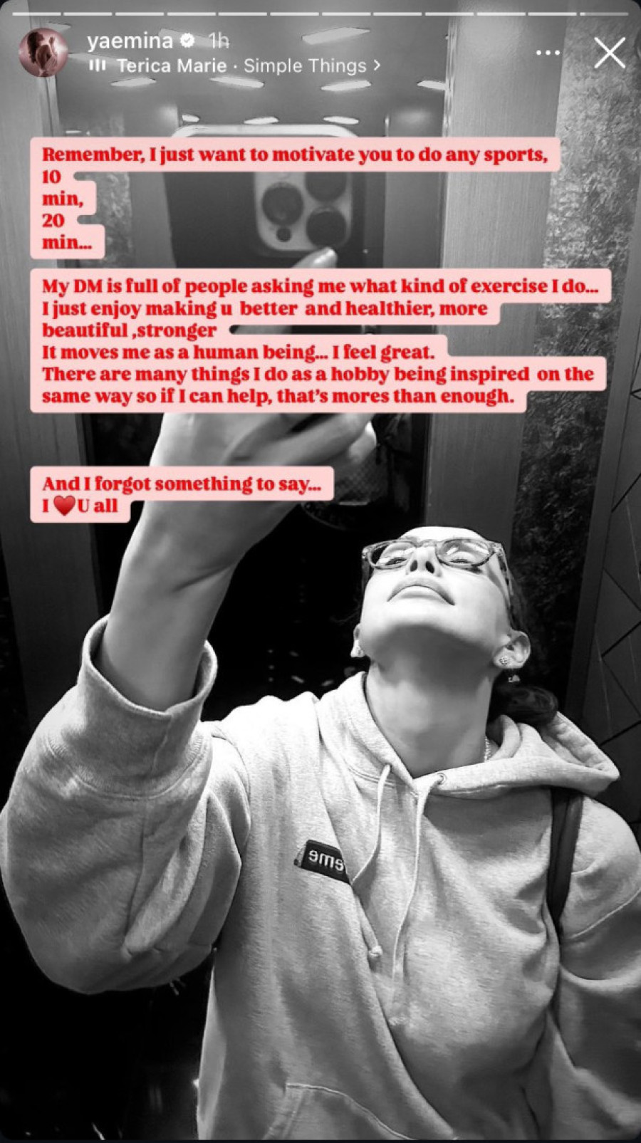 - Danas nisam stigla da odem u teretanu, pa sam odradila trening kući. Podeliću neke vežbe sa vama, a onda idem u studio, gde pokušavam da završim moj novi album - poručila je Emina.