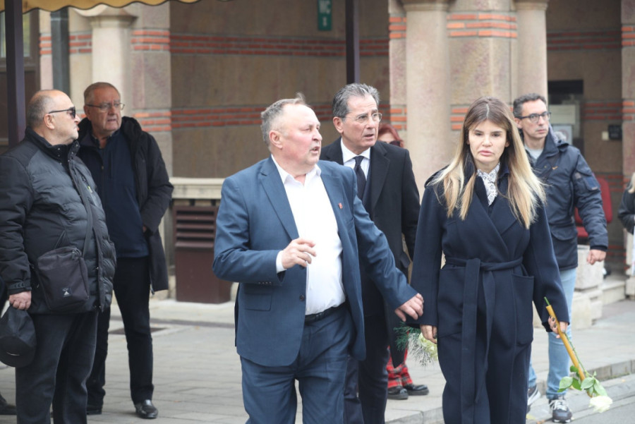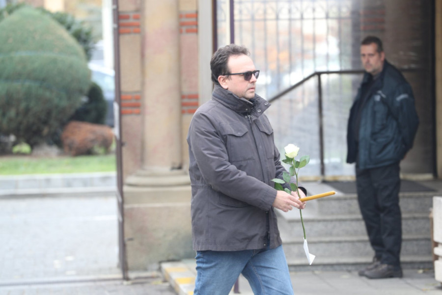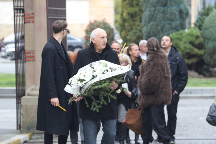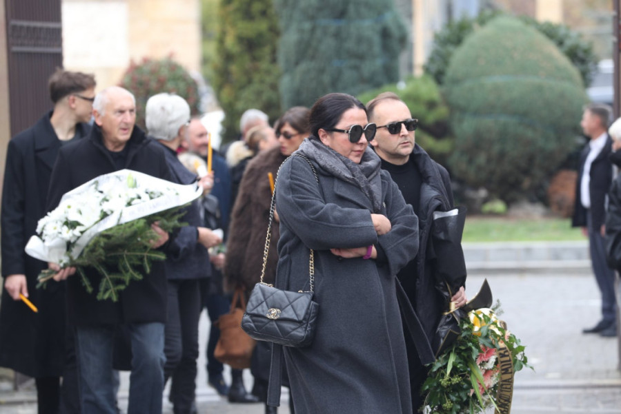 Bračni par došao je na groblje držeći se za ruke, u crnini i tišini, a tu su i Mitrovićeva deca. Oni su zajedno ušli u kapelu gde će biti održano opelo pre sahrane.