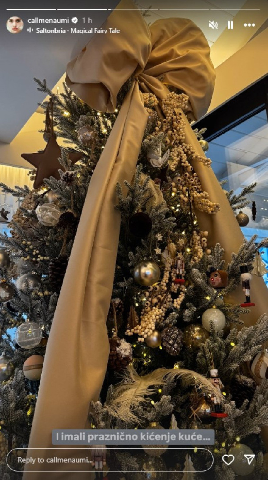 Na snimku koji je objavila, Mina je pokazala ogromnu jelku ukrašenu zlatnim detaljima, dok se na jastuku isticao motiv Krcka Oraščića, što je dodatno unelo prazničnu atmosferu u njihov dom.