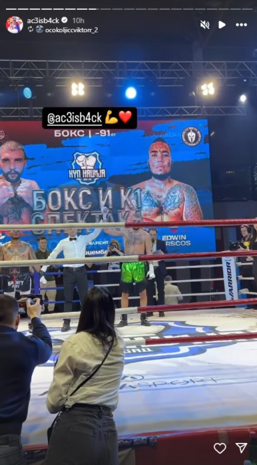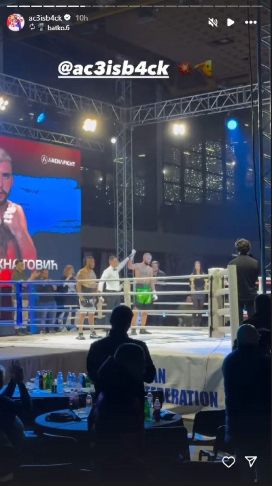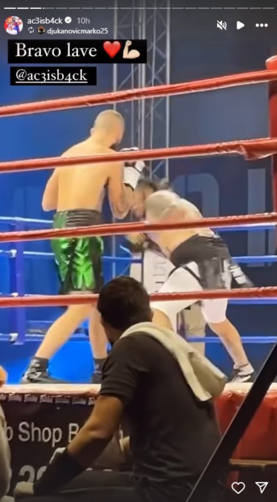 Veljko se nakon pobede pohvalio snimcima sa meča na svom Instagram profilu, a najveća podrška u publici bili su mu supruga Bogdana, najstariji sin Željko i brat od tetke Veljko Ocokoljić.