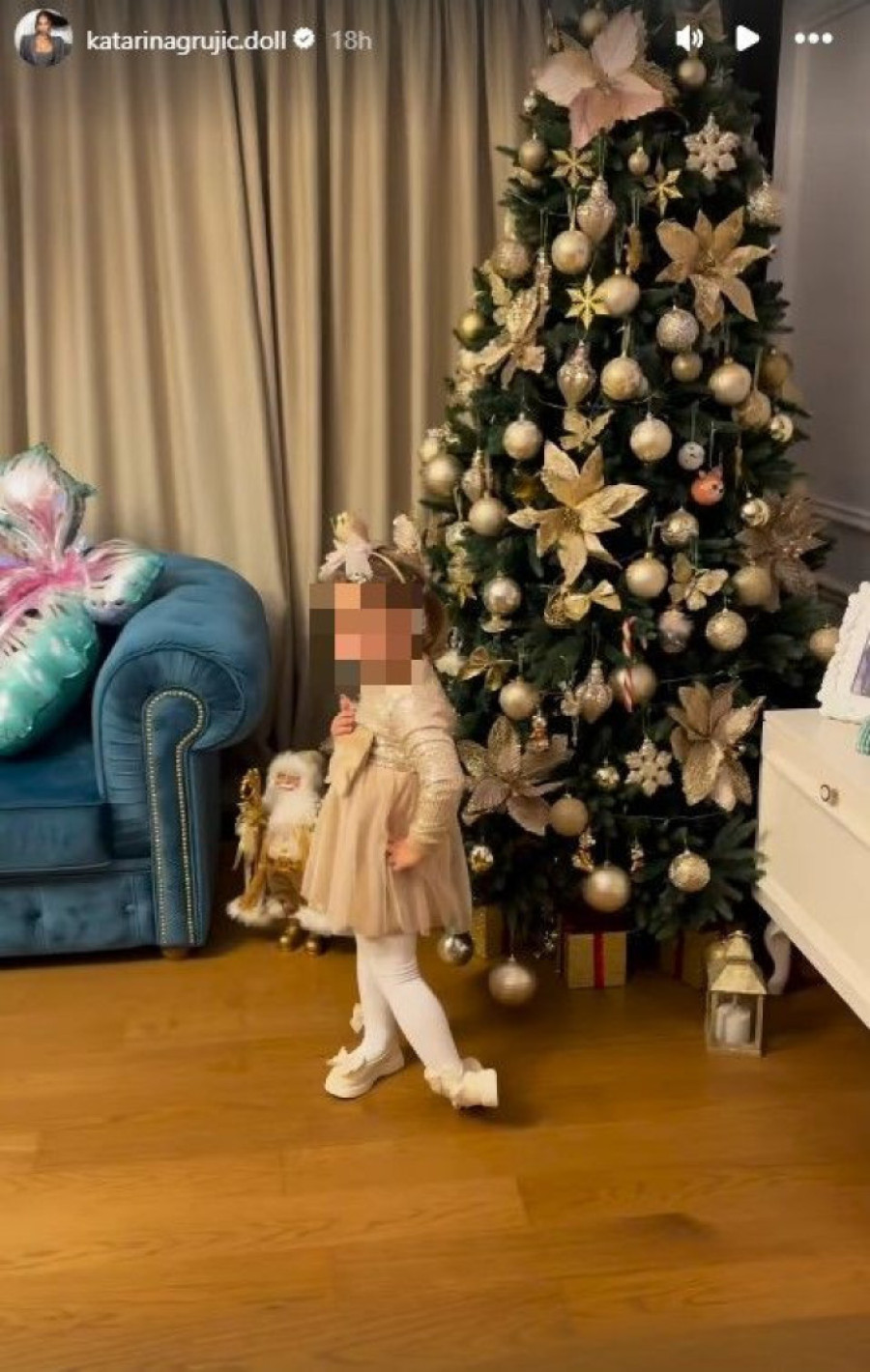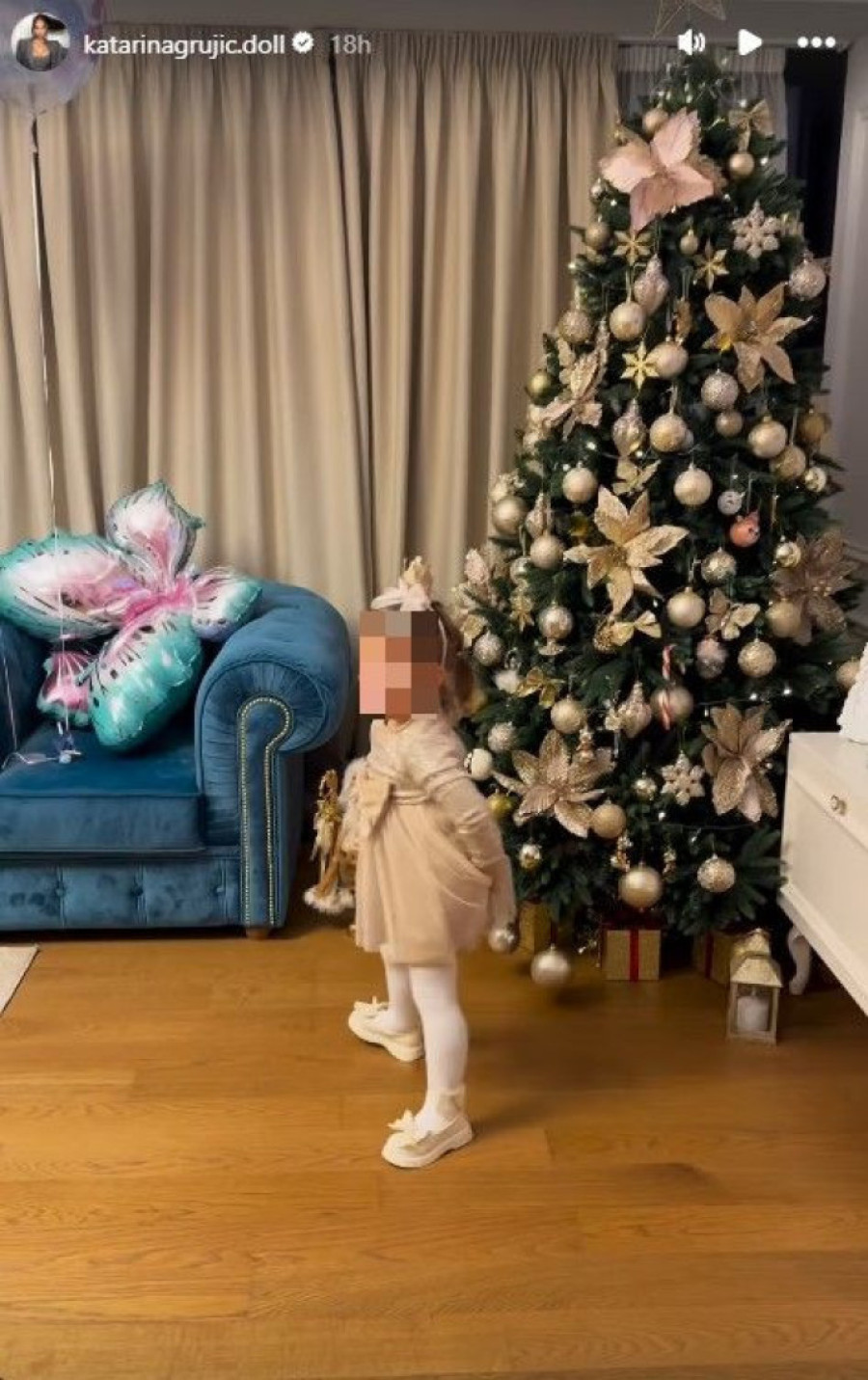 Pevačica Katarina Grujić otvorila je vrata svog porodičnog doma pa pokazala kako sa suprugom, fudbalerom Markom Gobeljićem i njihovom naslednicom, Katjom, dočekuje 2025. godinu. Jelku od poda do plafona ukrasila je zlatnim ukrasima - od kugli, do pahuljica, pa i leptirića, cveća, dok je na vrhu zvezda, što možete videti i u galeriji koja sledi.