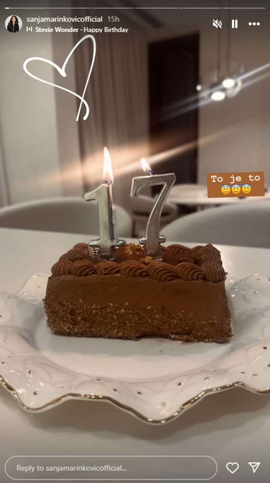 Na svom Instagram profilu, Sanja je podelila fotografiju iz porodičnog doma, gde je bila pripremljena torta sa vatrometom, uz emotivnu čestitku za svog naslednika:
