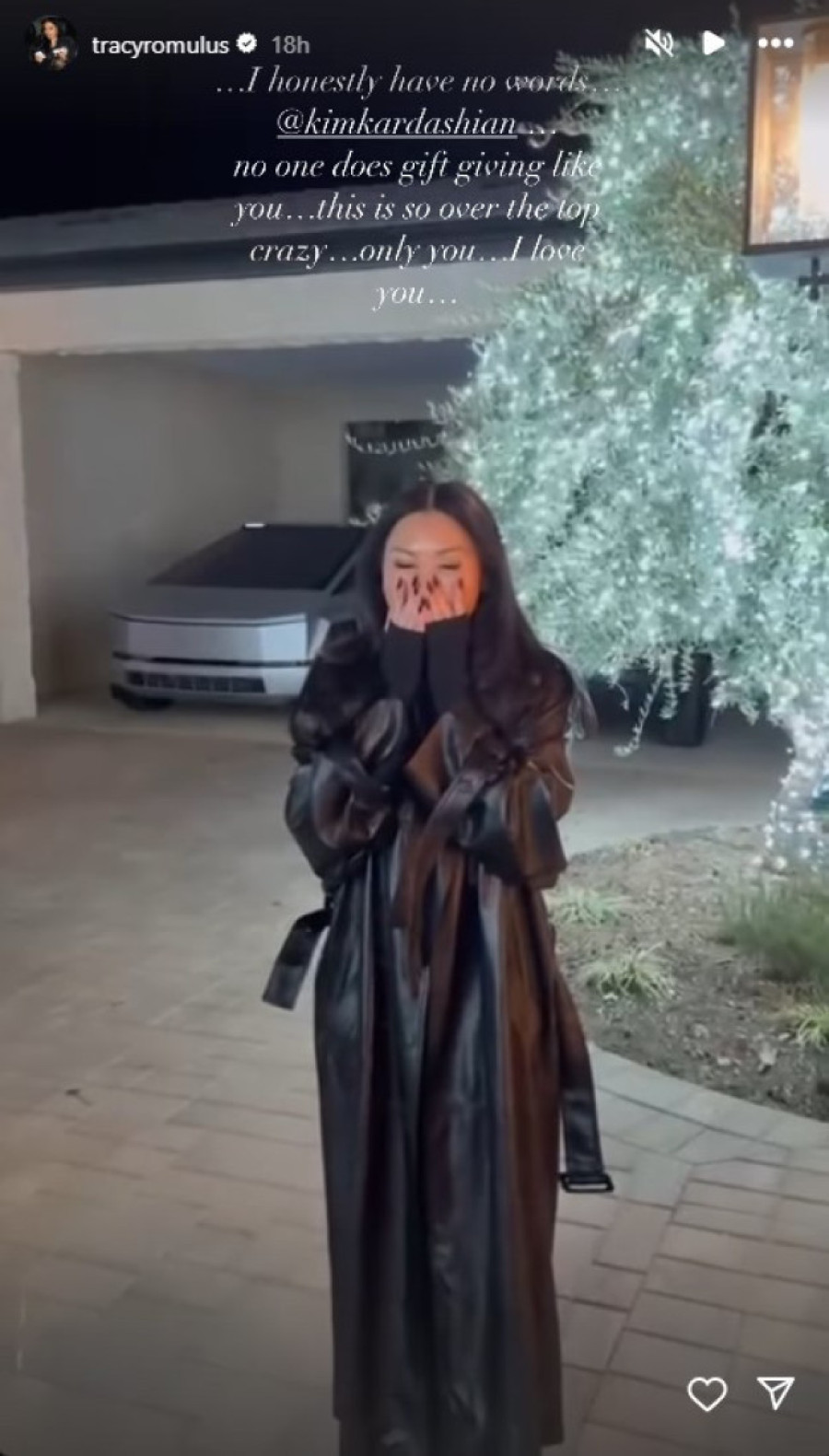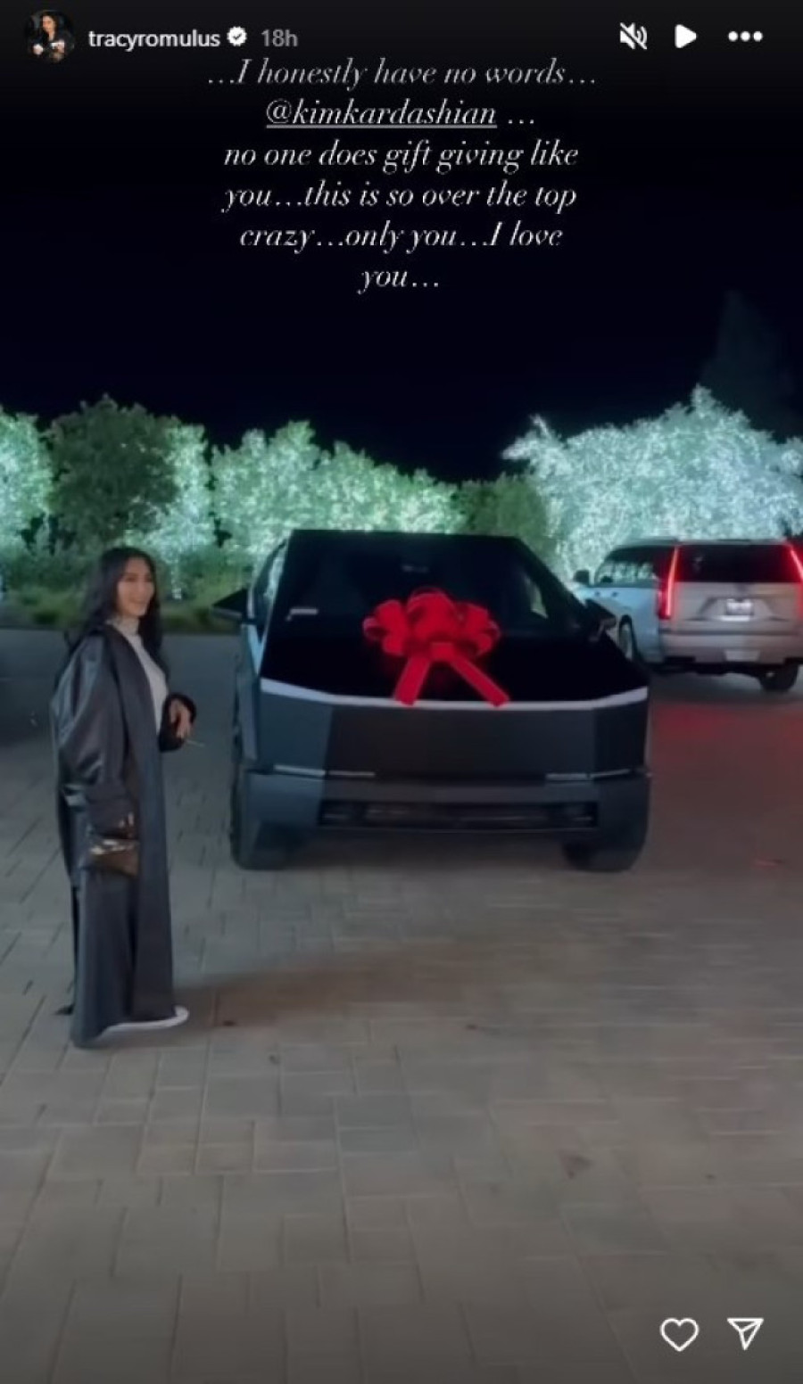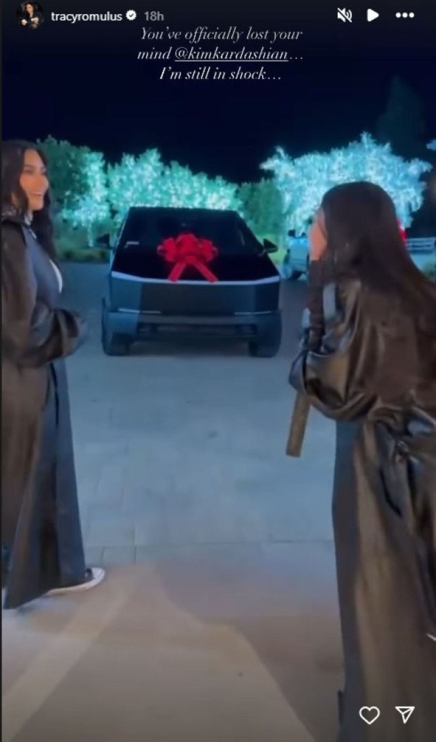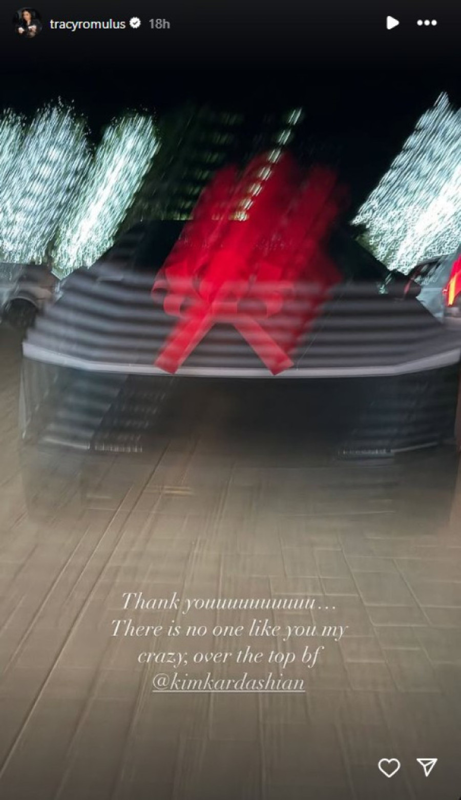 Trenutak kada je Trejsi saznala šta je dobila na poklon je, naravno, bio zabeležen i objavljen na društvenim mrežama. Kako smo mogli da vidimo, Trejsi je bila u kući Kardašijanove, kada ju je Kim zamolila da se okrene, a ona ugledala automobil sa velikom mašnom. Malo je reći da je bila šokirana.