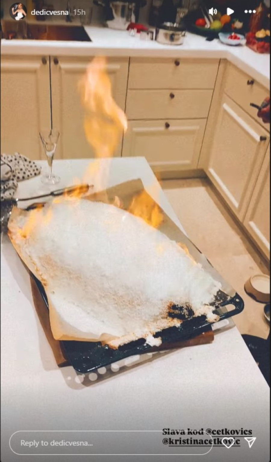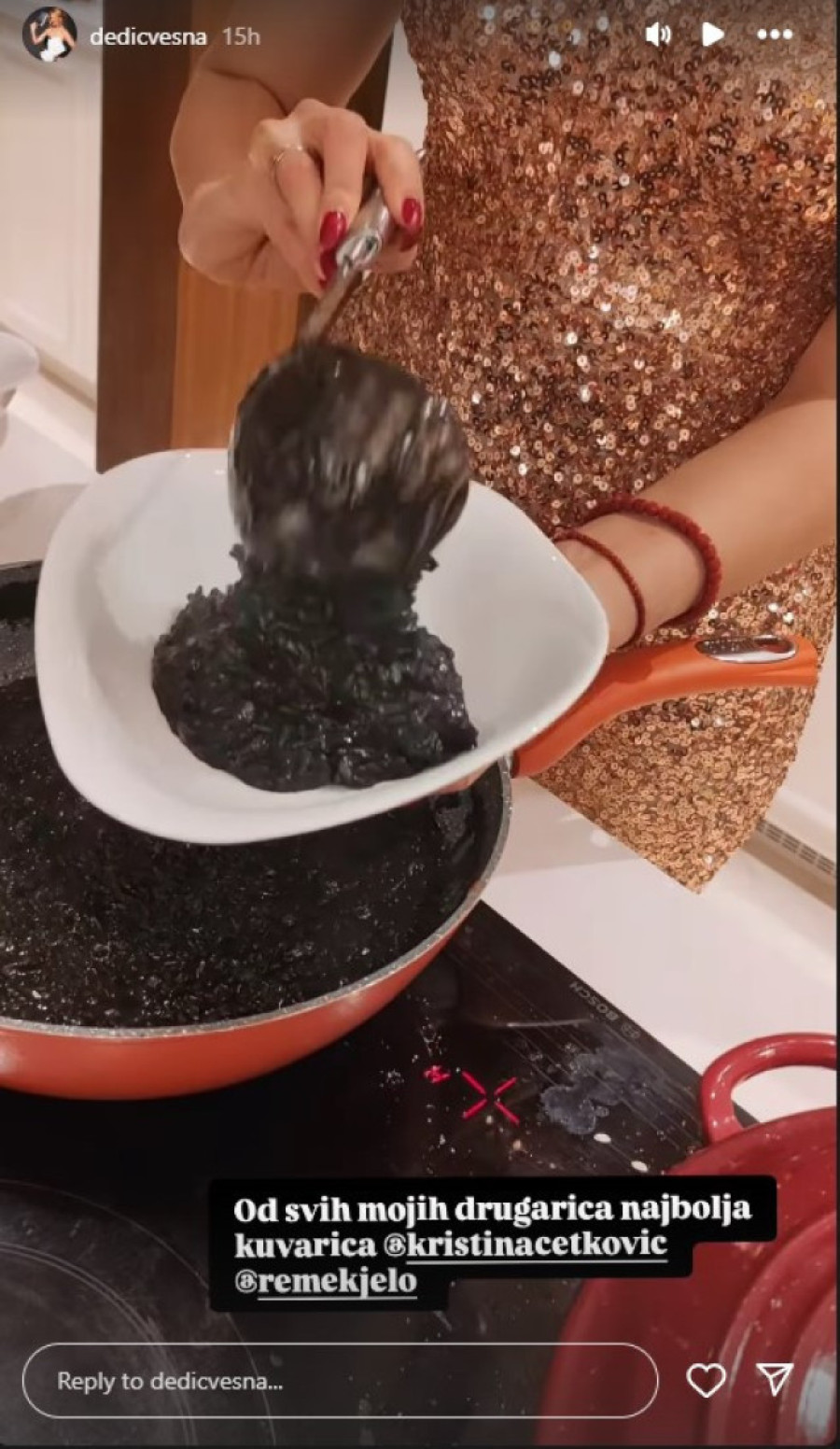- Mislim da si jedina koja dočekuje goste i kuva u šljokicama u Srbiji - rekla joj je Vesna Dedić dok je snimala Kristinu kako sprema, a ona joj je na to odgovorila: