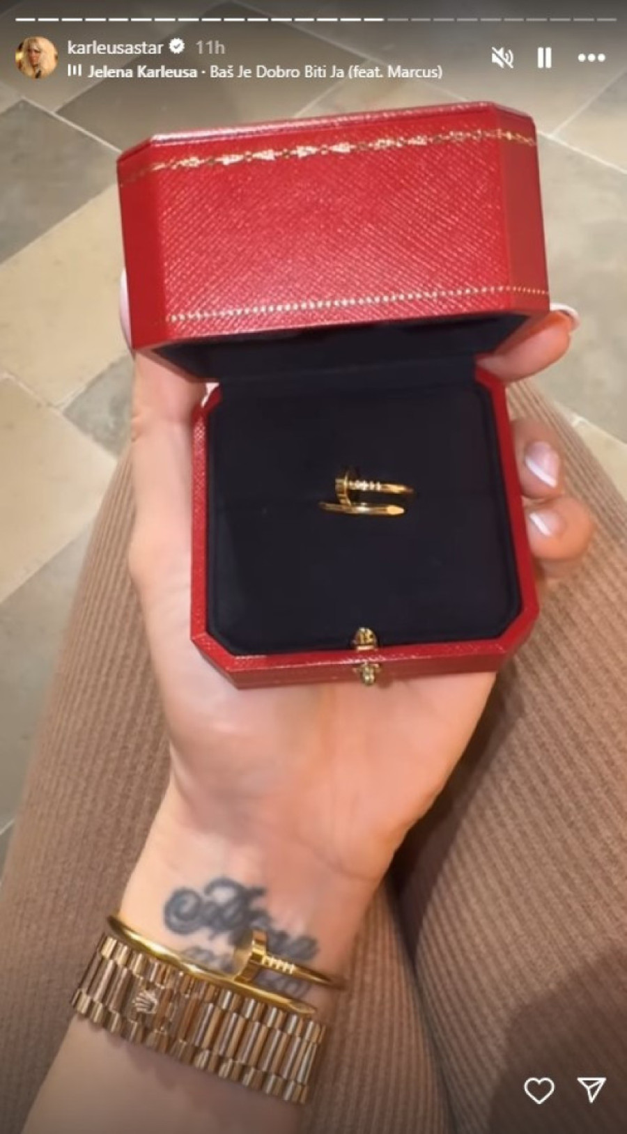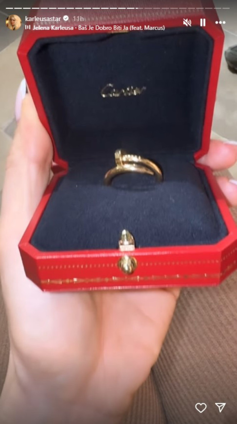 Naime, 31. decembra, Karleuša je podelila snimak na kojem je otpakovala zlatni prsten brenda "Cartier", koji je mnoge iznenadio svojom vrednošću i dizajnom.