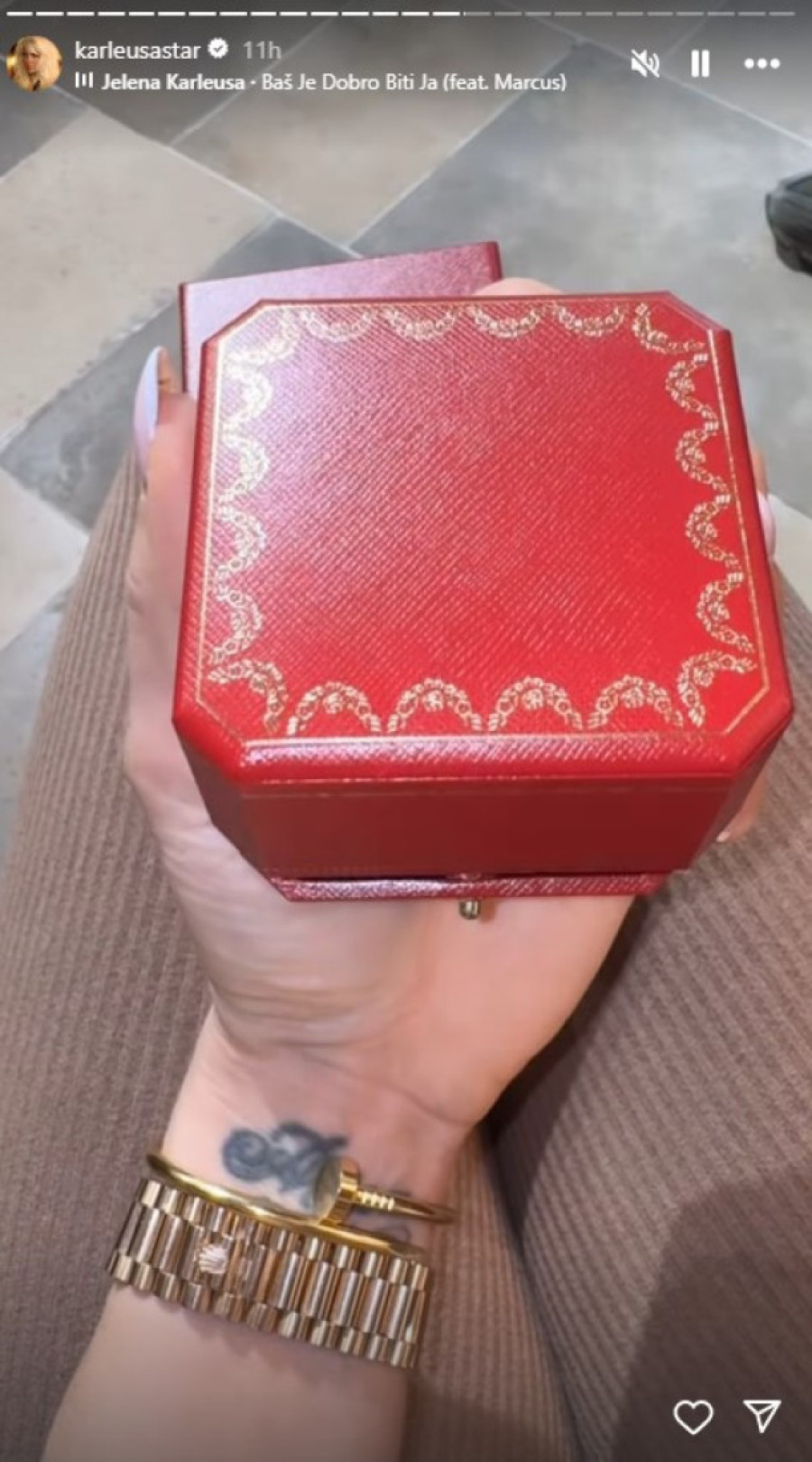 Jelena je snimila kutiju nakita sa prepoznatljivim logom, a prsten u njoj oduševio je sve koji su pratili njen Instagram.