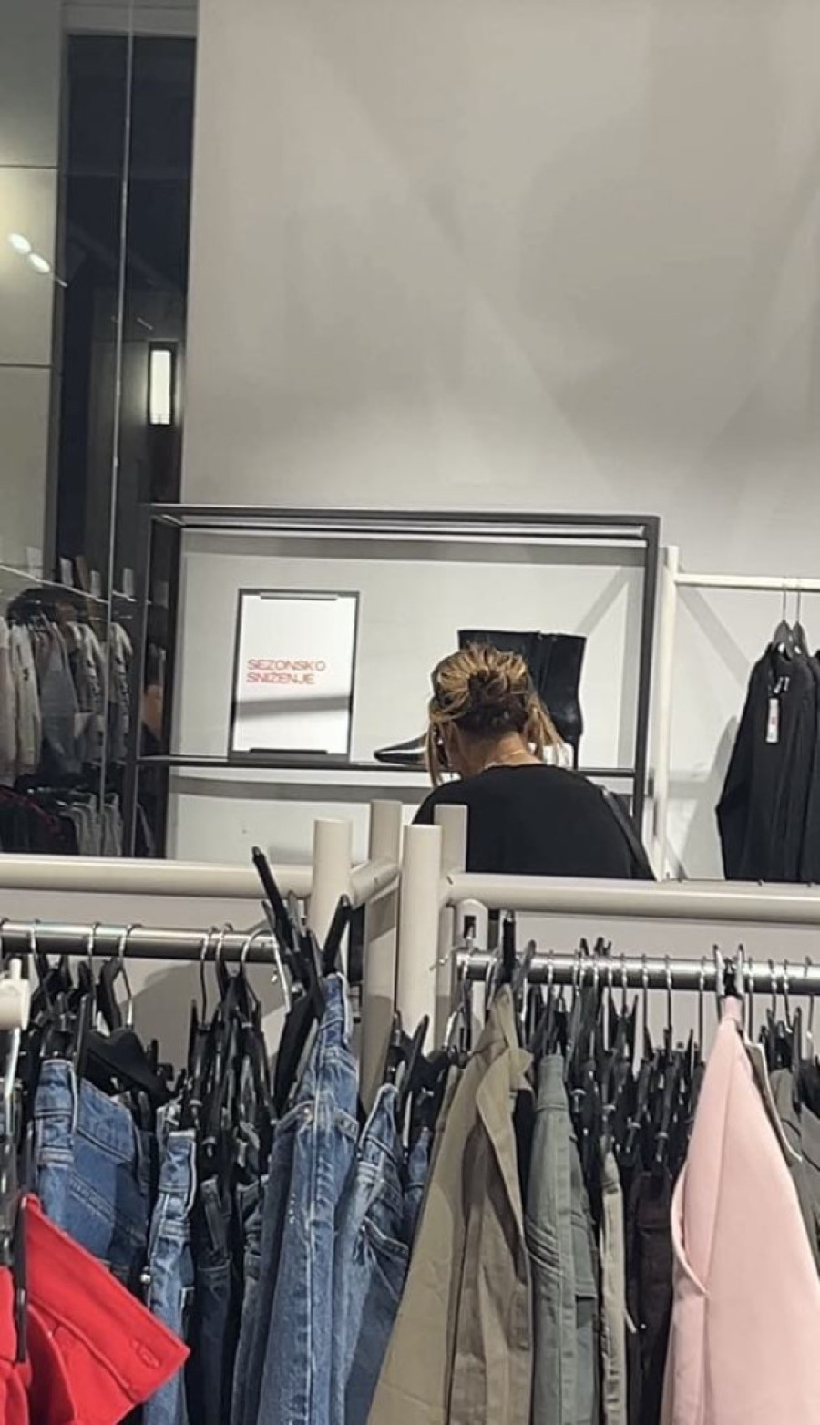Ana je dugo birala i razgledala stvari u radnji, potpuno relaksirana i ozbiljna, a posle nekog vremena skinula je naočare, te se videlo i da nije imala šminku. Kada je odabrala više komada garderobe, otišla je u kabinu, a tada je posle nekog vremena po prodavnici počeo da je traži dečko.