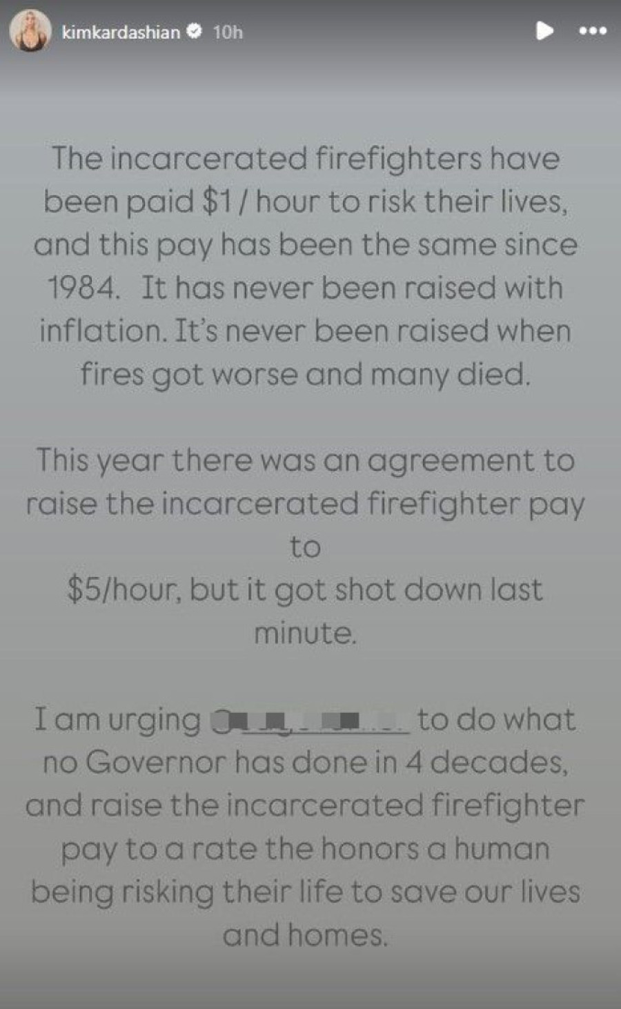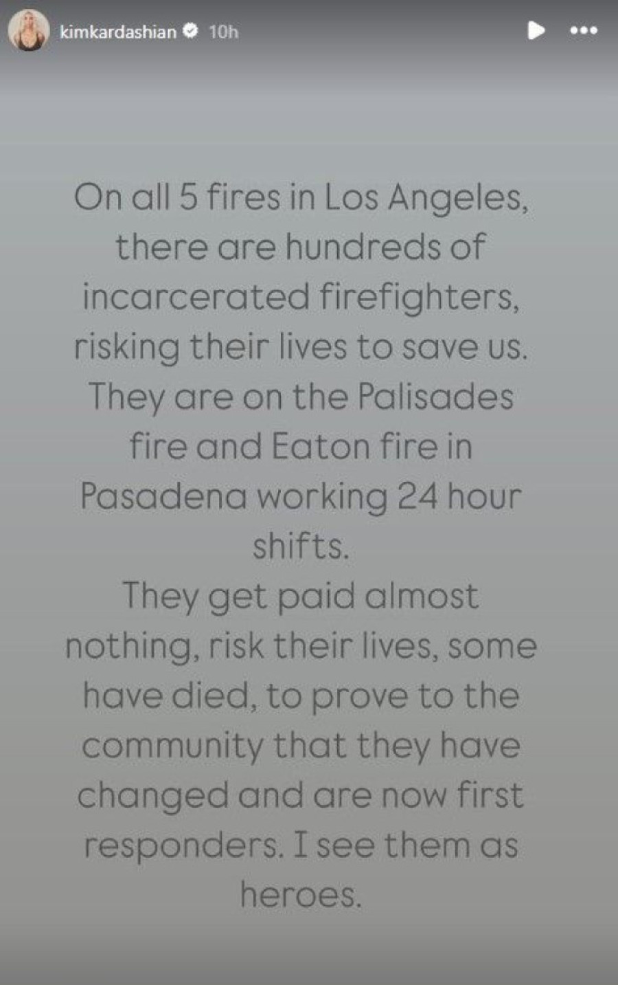 Oglasivši se na svom Instagramu sa specijalnom porukom za vatrogasce koji se aktivno bore s vatrom, Kardašijanova je, veruje se, u neku ruku pokušala da čitavu tu dramu makar ostavi u senci.