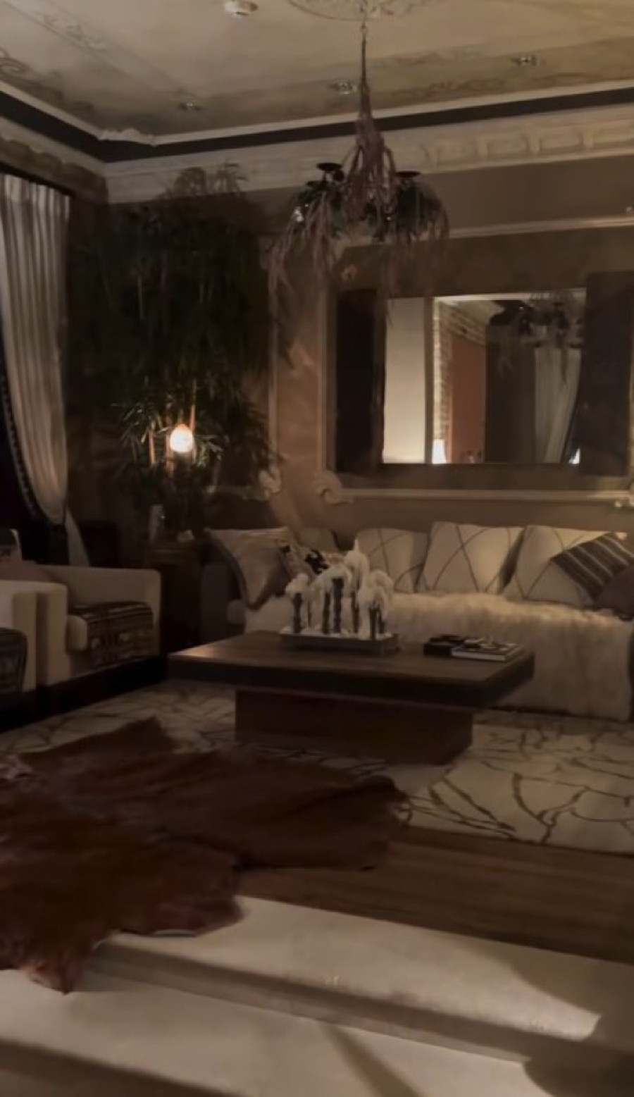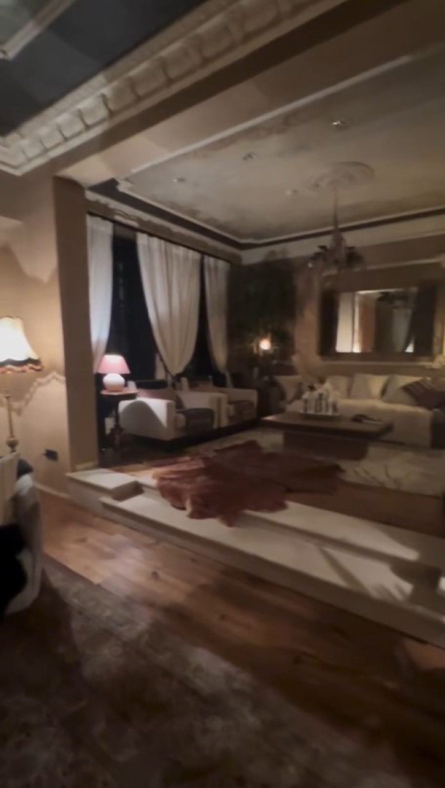 Ceo je mahom u zemljanim bojama i već na prvi pogled deluje prilično filmski - zbog stilskog nameštaja, dugih zavesa... Kao i lustera neobičnih oblika.