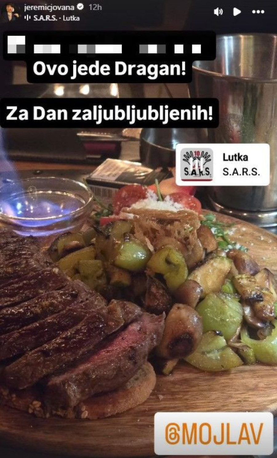 Voditeljka jutarnjeg programa na ružičastoj televiziji Jovana Jeremić i njen dečko, Dragan Stanković, povodom Dana zaljubljenih otišli su na romantičnu večeru. Kako im je bio pripremljen pravi spektakl za nepca, Jovana nije mogla a da se istim i ne pohvali na društvenim mrežama.