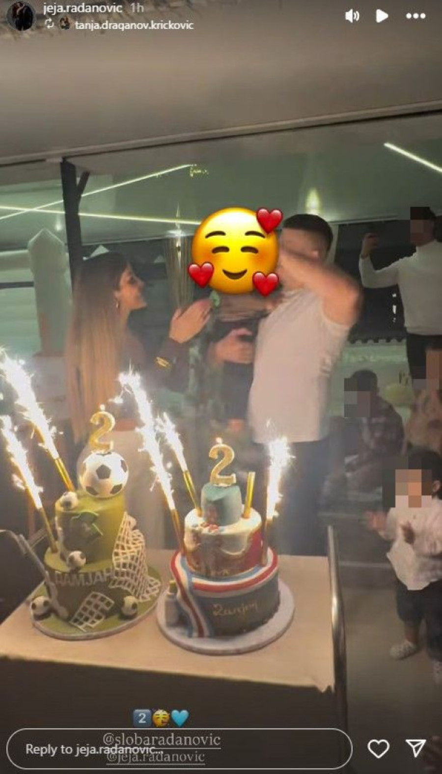 Sudeći po Jeleninim Instagram „storijima", za dečaka su bile pripremljene dve višespratne torte s vetrometom, njegovim imenom, fudbalskim loptama... A ona i suprug posebno su se veselili, gotovo ne ispuštajući slavljenika iz ruku.