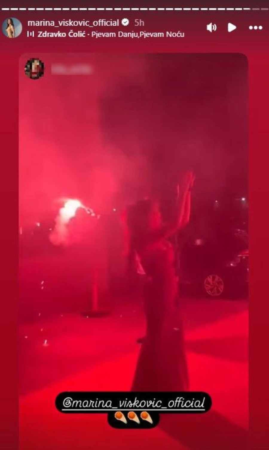 Veče je bilo ispunjeno energijom, a Marina je tokom cele večeri đuskala i zabavljala se sa svojim gostima. Ipak, najiznenađujući trenutak bio je kada su na proslavu unete baklje, što je sve prisutne iznova iznenadilo i dodatno ulepšalo ovu nezaboravnu proslavu.