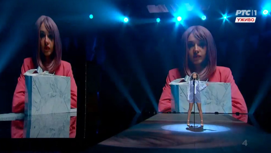 Nataša je na sceni bila sama, obučena u kratku plavu haljinu, sa kravatom, a njen nastup je pratila interesantna grafika koja se prikazivala na video bimovima.