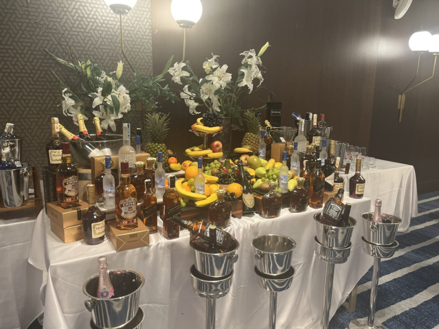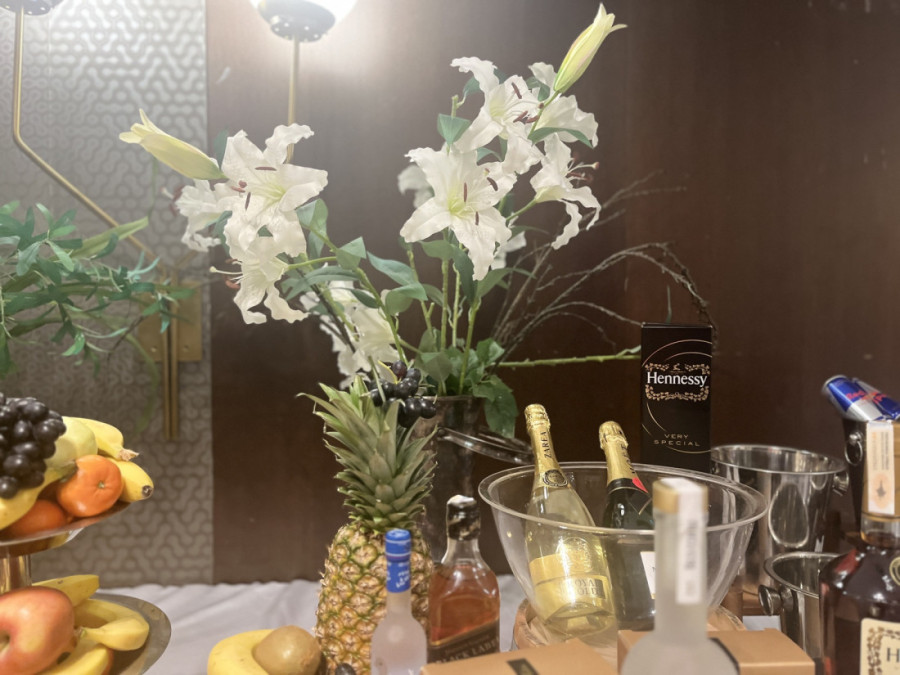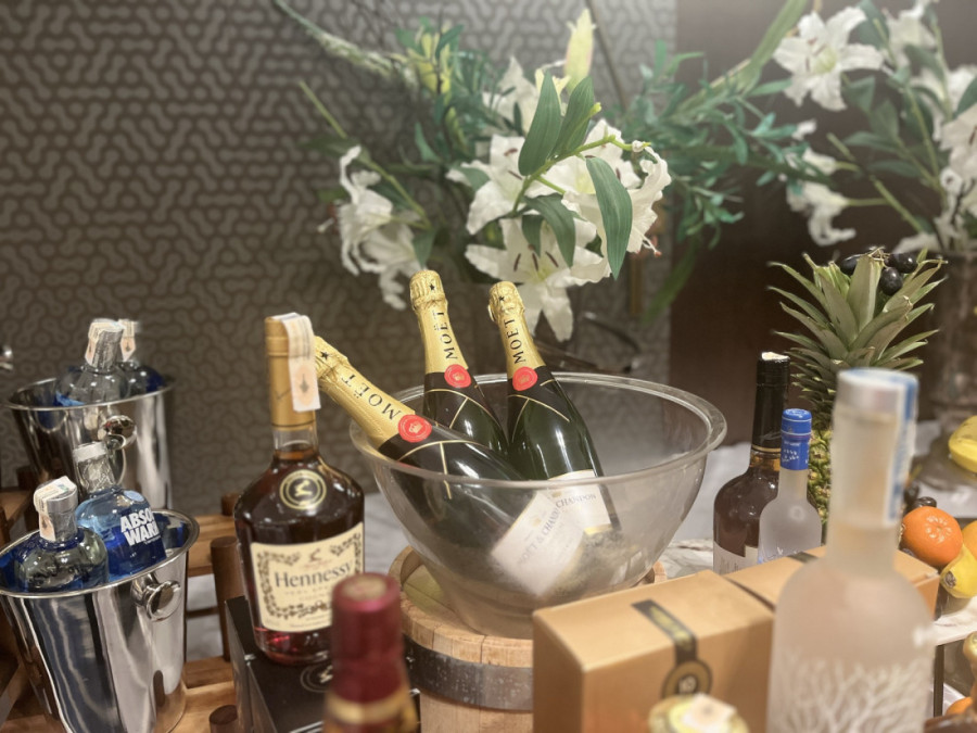 Ipak, najveću pažnju privukao je sto sa voćem i raznim alkoholnim pićima poznatih brendova. Obezbeđen je i prostor za slikanje sa slavljenikom koji obiluje zlatnim detaljima i belim cvećem.