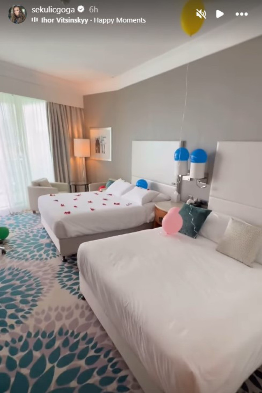To se već videlo i na samom ulasku u luksuzni hotel gde je pevačica odsela sa sinom, gde ih je dočekalo iznenađenje. Soba sa predivnim pogledom, laticama po krevetu i balonima ju je oduševila.