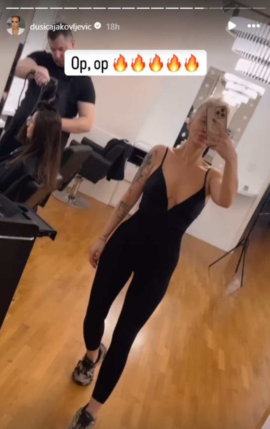 Nakon promene, Dušica je snimila rezultat u ogledalu, a njena nova frizura privukla je veliku pažnju. Za ovu priliku, voditeljka je odabrala crni, pripijeni kombinezon sa dubokim dekolteom, što je dodatno zaintrigiralo njene pratioce. Komentari na društvenim mrežama odmah su počeli da pristižu, a mnogi su pohvalili njenu hrabrost i novi izgled.