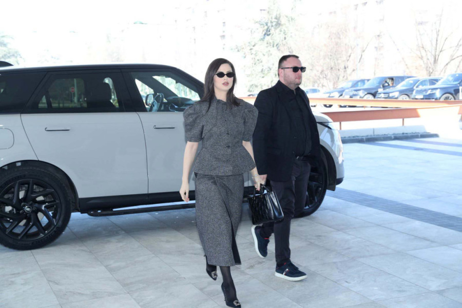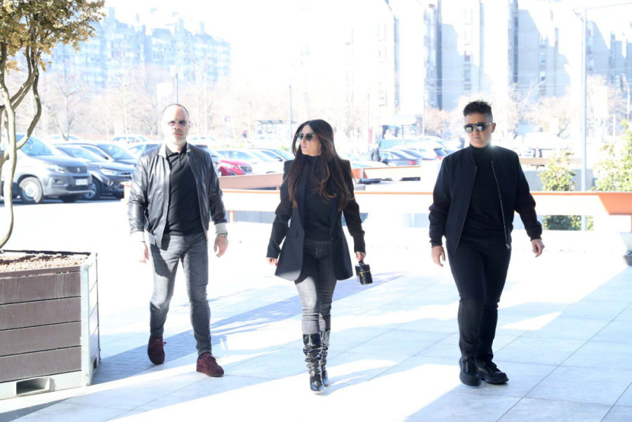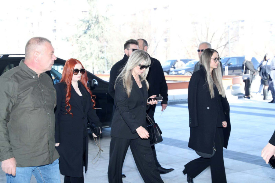 Bila je vidno utučena, sa velikim crnim naočarima na glavi, a bila je cela u crnini. Za ruku je držala supruga i užurbano prošla pored pripadnika sedme sile.