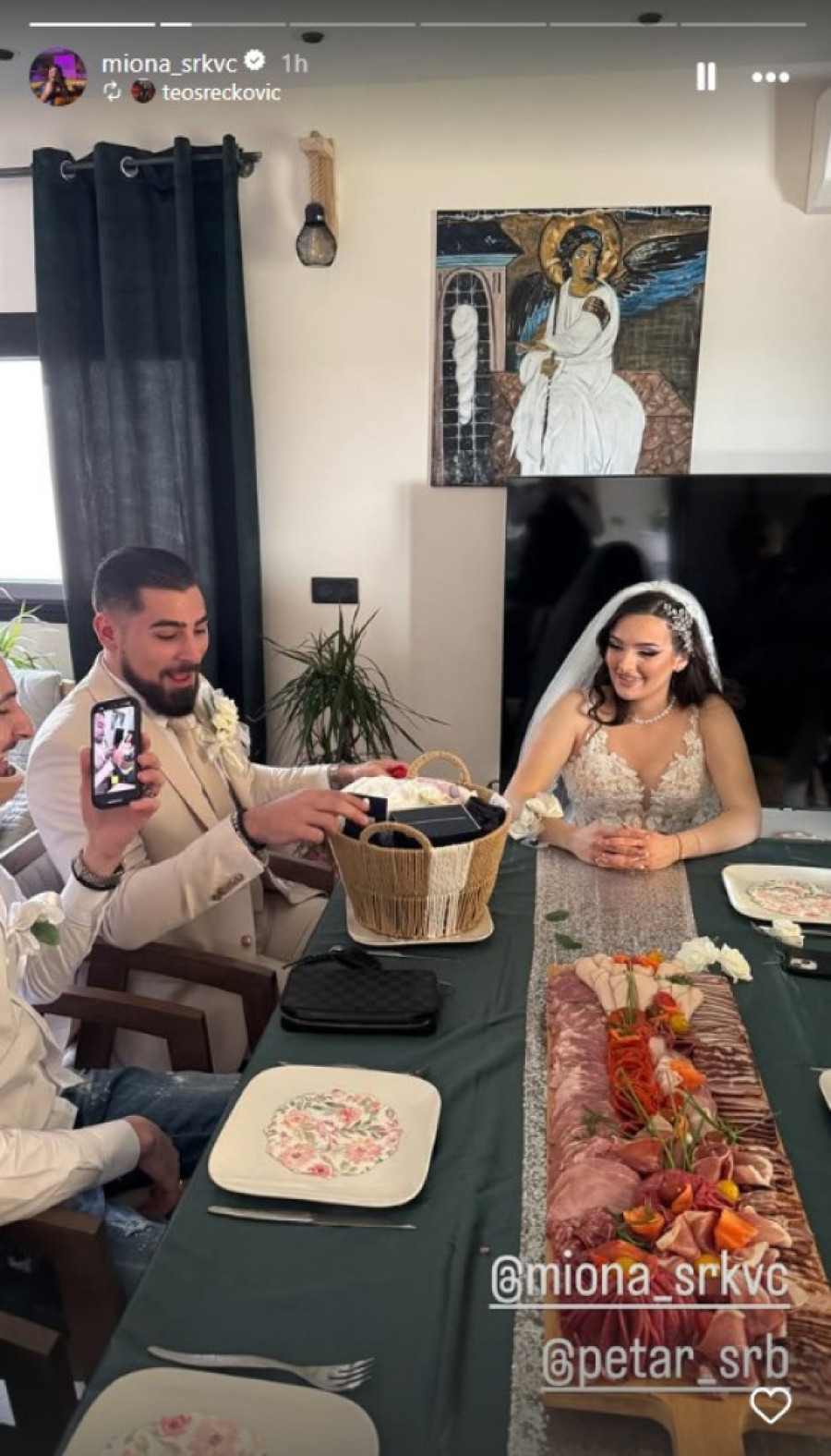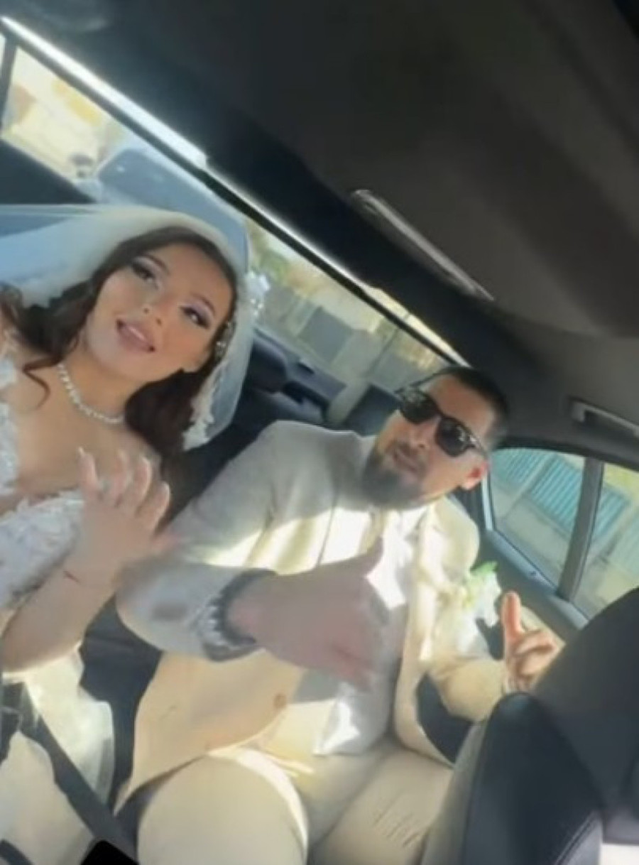 Miona, koja je u drugom stanju, blista u raskošnoj venčanici i sa velom na glavi, dok je mladoženja odabrao belo odelo za ovu posebnu priliku. Par je uživao u putovanju prema venčanju, zabavljajući se uz stihove Tee Tairović i Nućija.