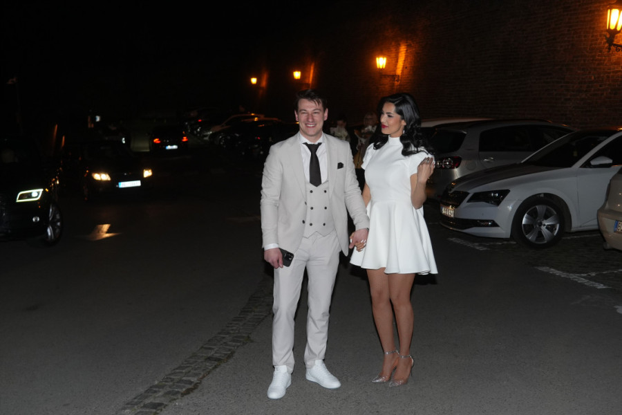 Tanja Savić, koja se pojavila kao prava princeza, nosila je kratku, elegantnu belu haljinu, a nije se odvajala od svog dečka Mukija, koji je takođe bio u beloj odevnoj kombinaciji sa crnim detaljima.