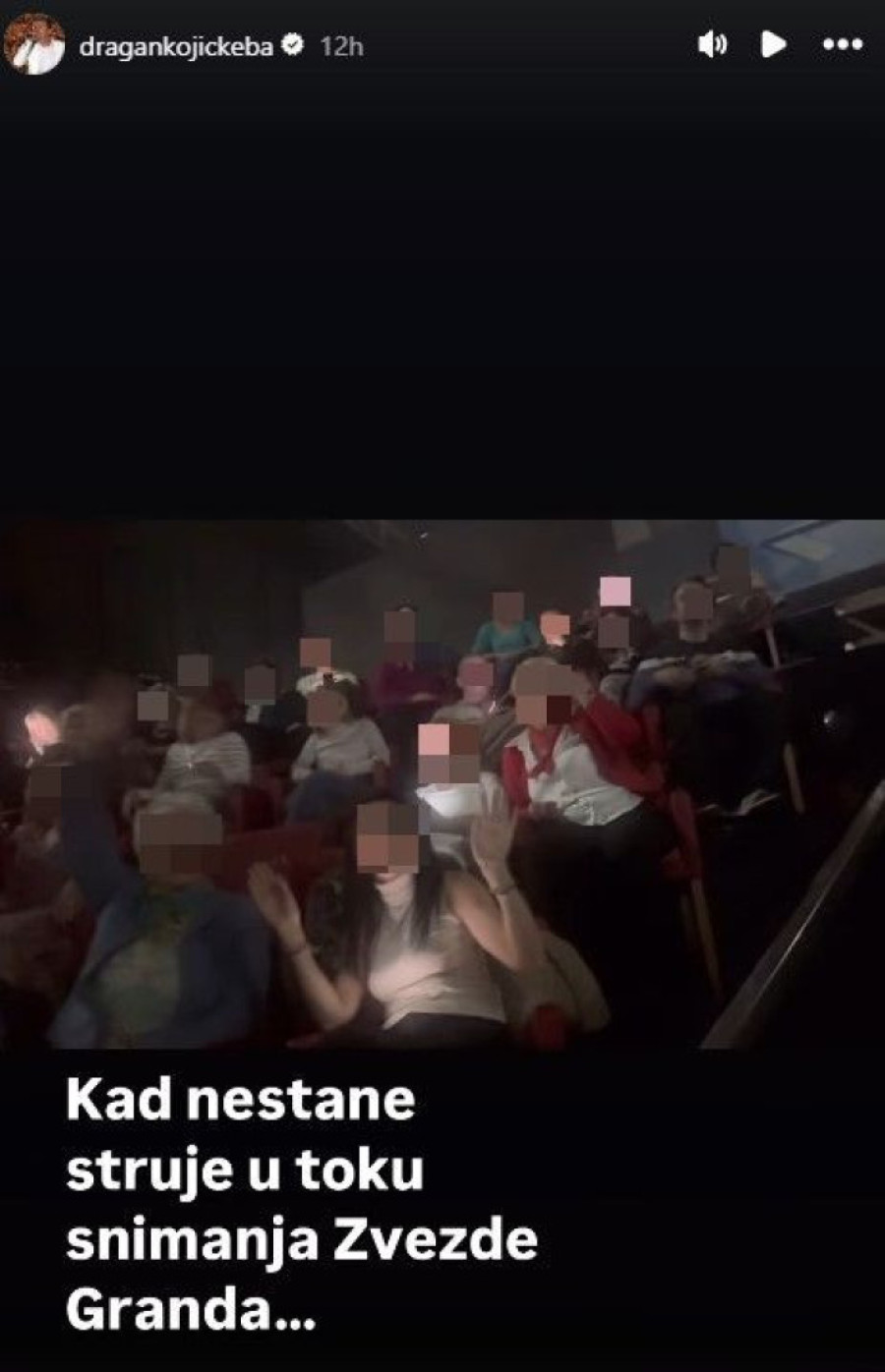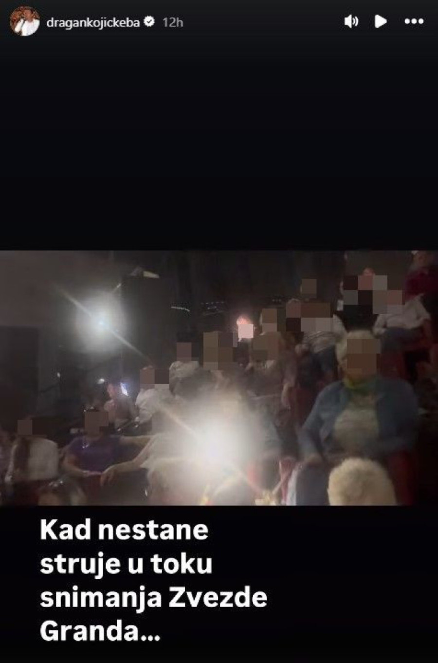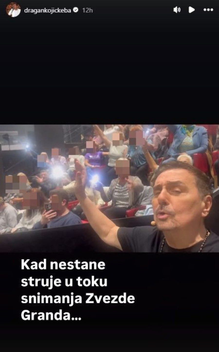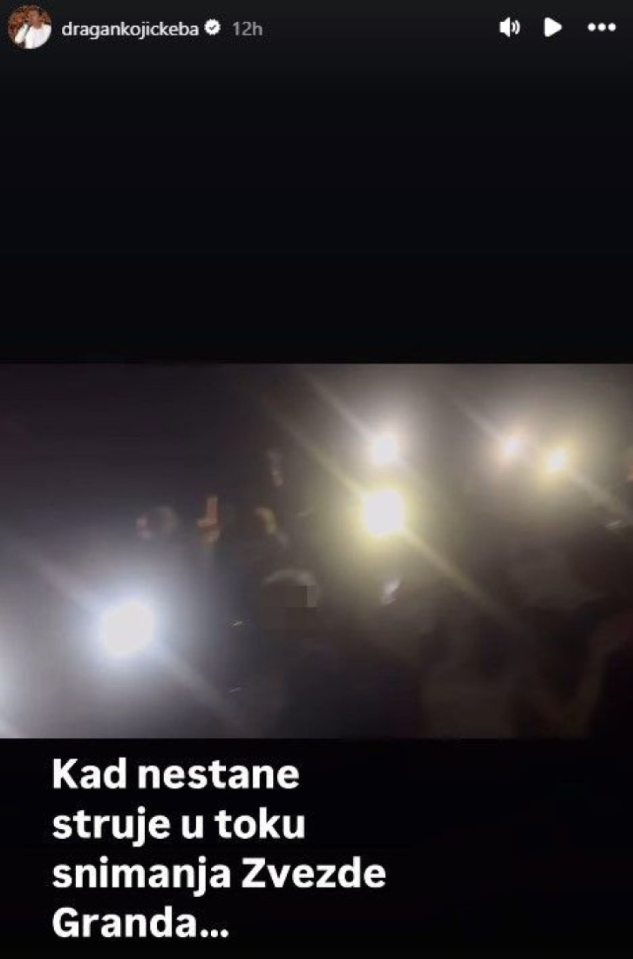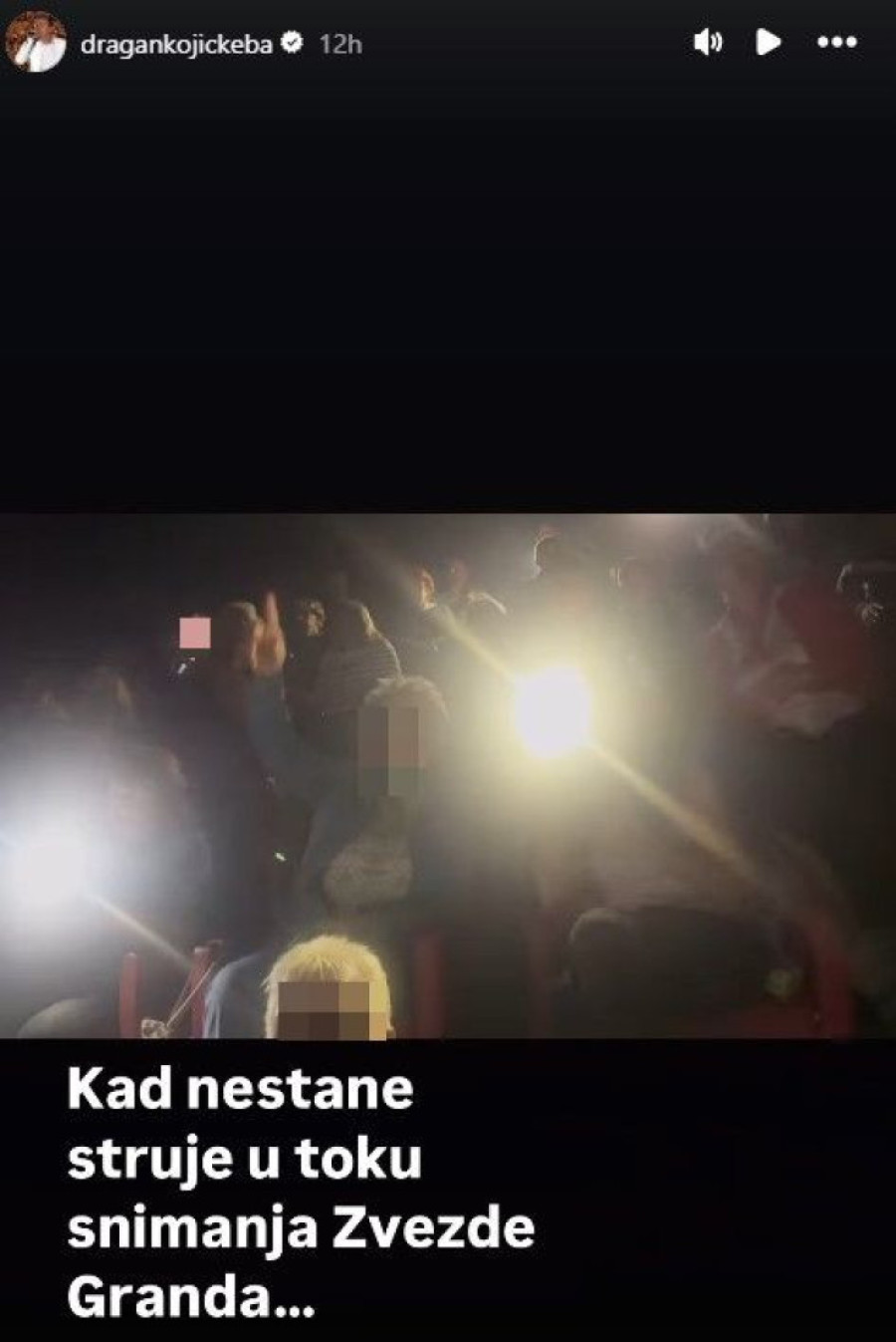 Dragan Kojić Keba otkrio je putem svojih društvenih mreža da su „Zvezde Granda" usred snimanja ostale bez struje u jednom trenutku. Zatim, sudeći po njegovom snimku, usledila je još jedna neočekivana situacija - Kebin mini koncert u okviru „Zvezda Granda", a rame uz rame sa publikom talent-šoua.